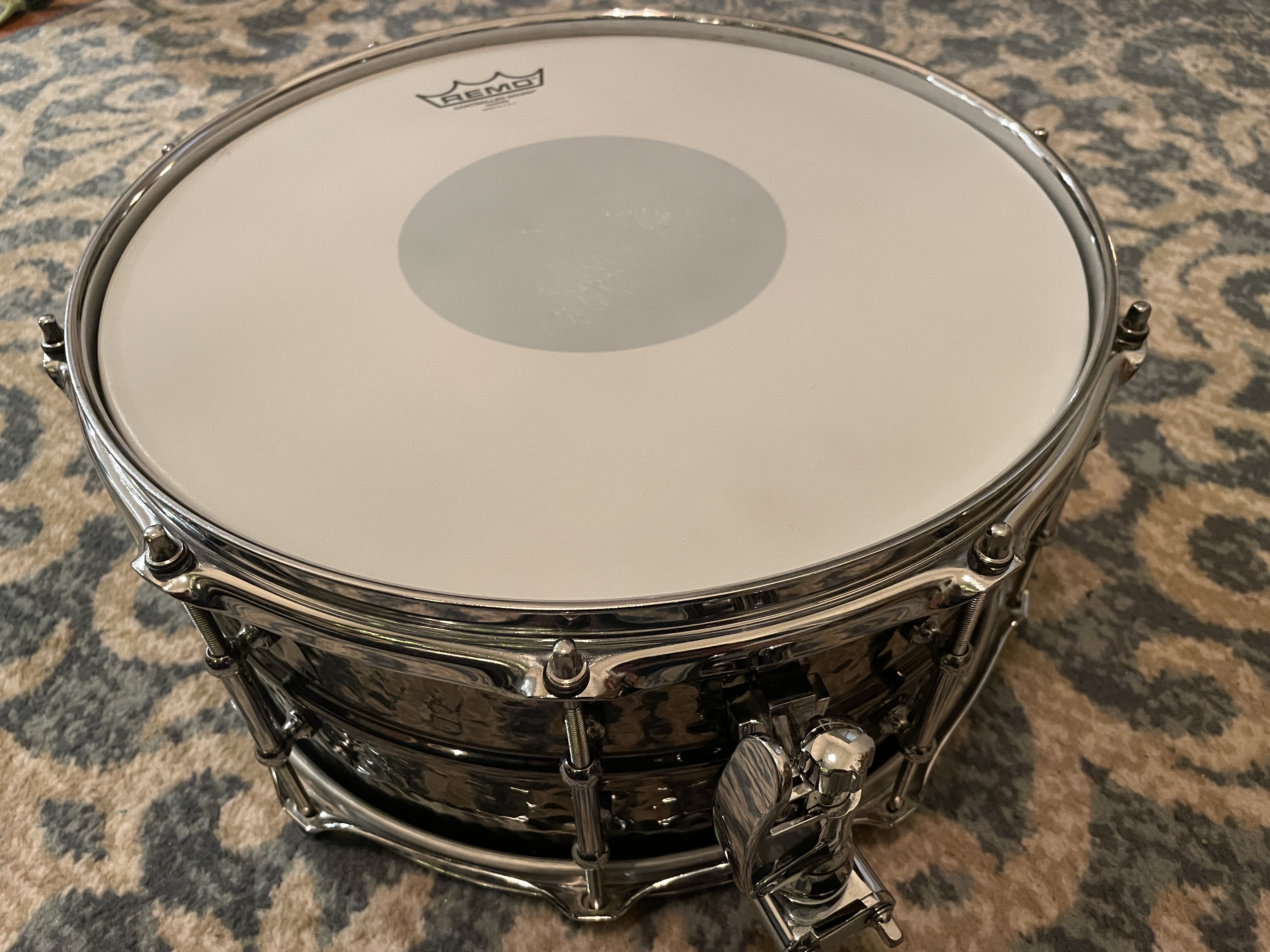 Vends Ludwig LB417KT 14"x6,5" Black Beauty, en parfait état.Fût en laiton martelé à la main. Coquilles tubulaires non piquées.