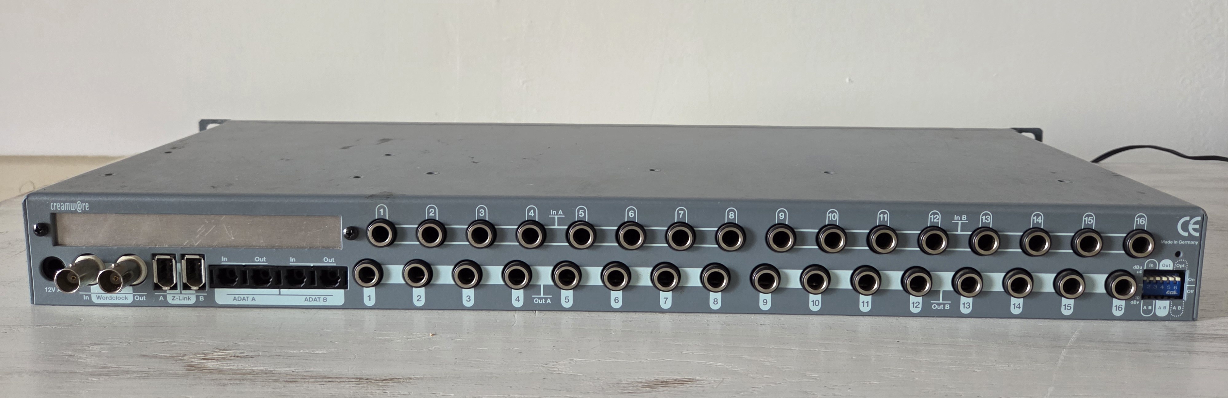 Concernant le Creamware, il s’agit d’un convertisseur 16 in / 16 out sur TRS avec entrées et sorties sur abat. Creamware est anciennement Ferofish, donc très bon matériel.