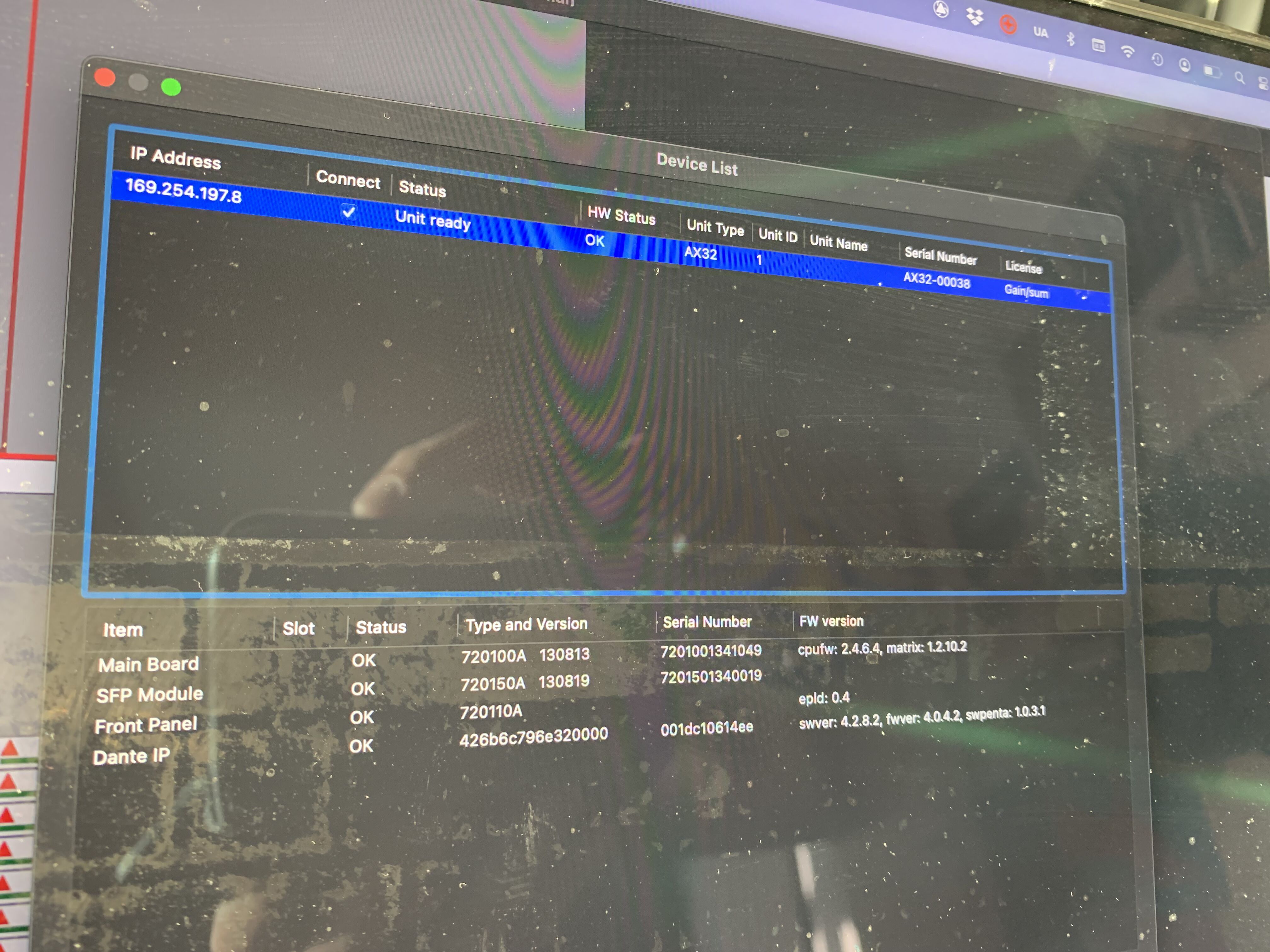 L'unité est a jour des firmwares + firmware carte DANTE.