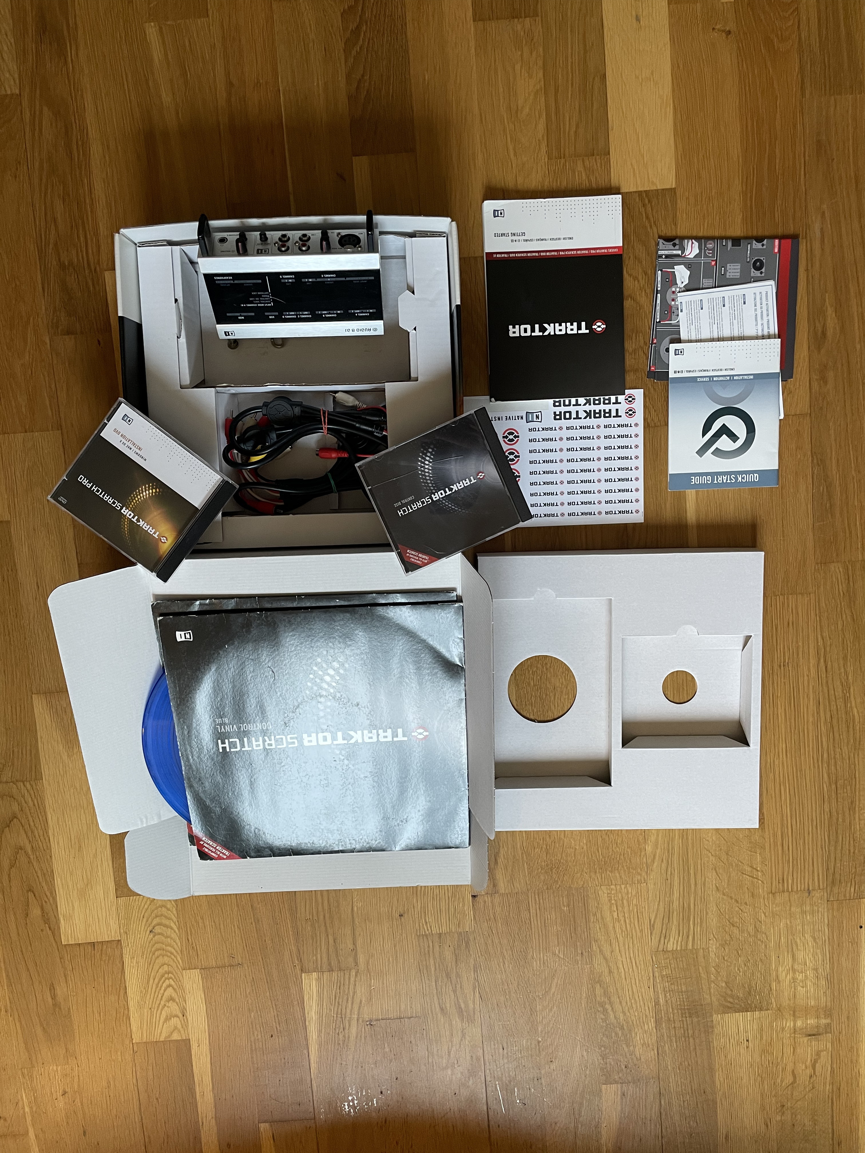 J'utilise 2 DENON DNS-3700, le Native Instrument Kontrol X1, et la carte son Audio 4 DJ (Je crois qu'il est possible de brancher les platines en MIDI mais je n'ai pas réussi à configurer correctement donc j'ai laissé tomber !).