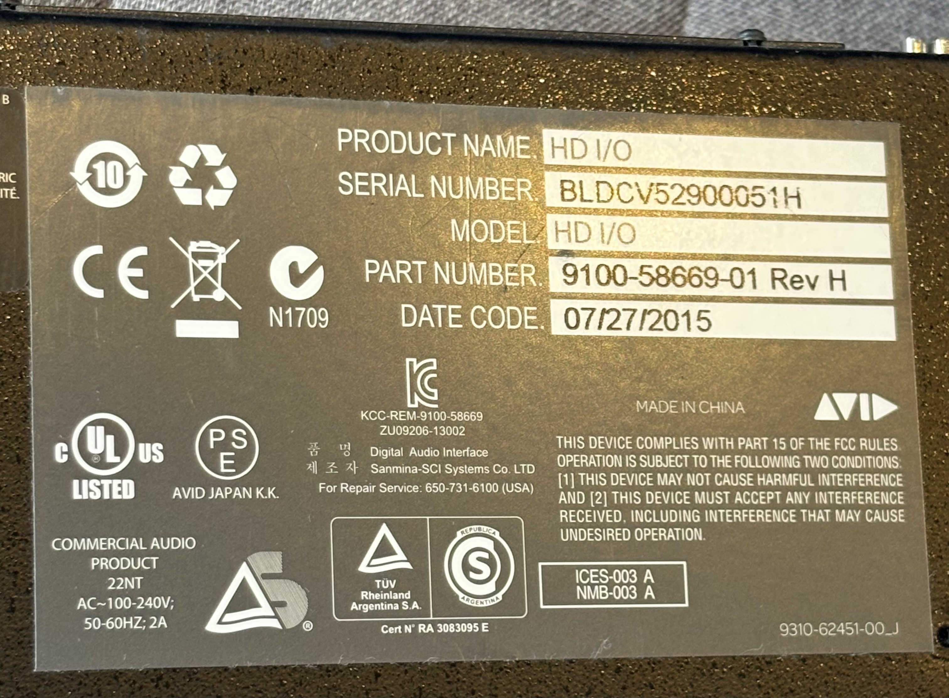 AVID HD I/O Analog 16x16 (possibilité de vente avec HD Native Thunderbolt)