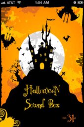 Enfin, si vous avez un iPhone, un iPod Touch ou un iPad, voici la Halloween Sound Box, une petite appli pas récente mais bien sympathique qui met au bout de vos doigts 16 sons différents qui feront sursauter les petits diables à la recherche de bonbons, et les autres…