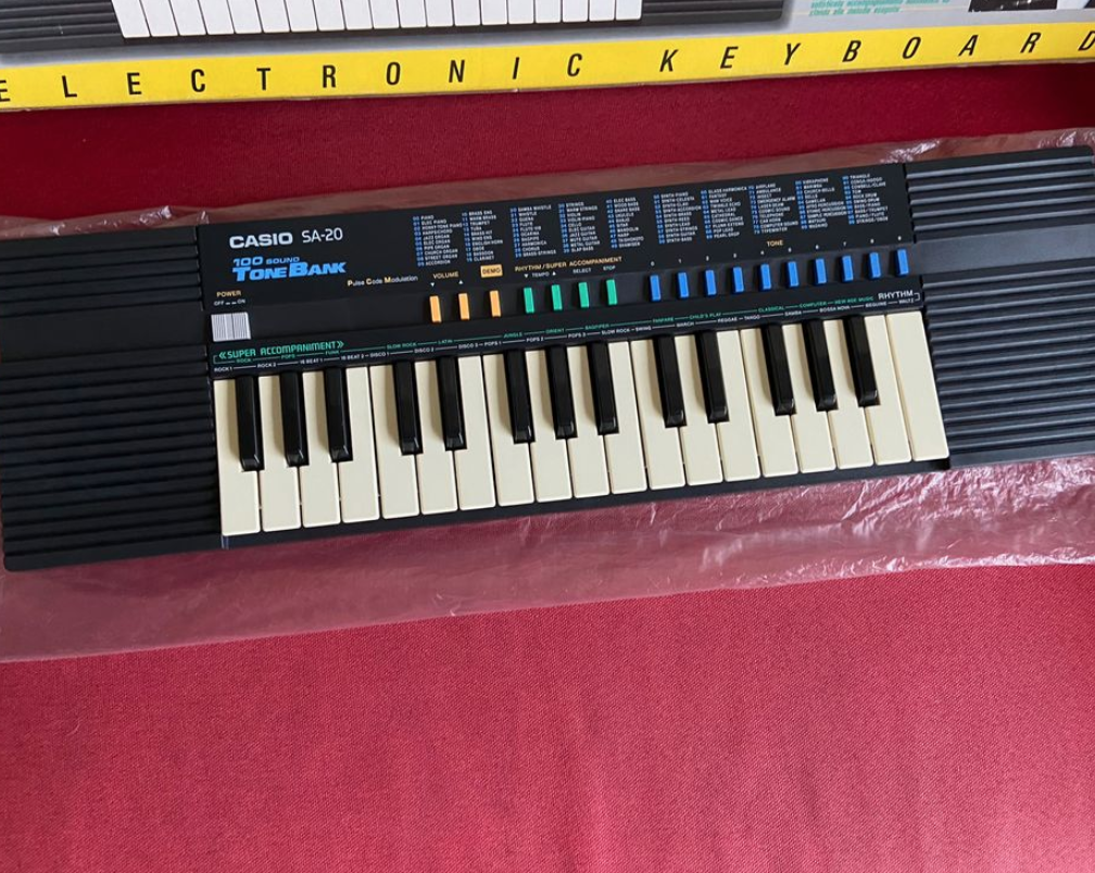 Clavier Synthé Vintage des Années 80 Casio SA20 CasioTone Complet Etat Collection.Version Très Rare quasi introuvable avec le livre de Michael Jackson et sa Facture Fnac d'origine.