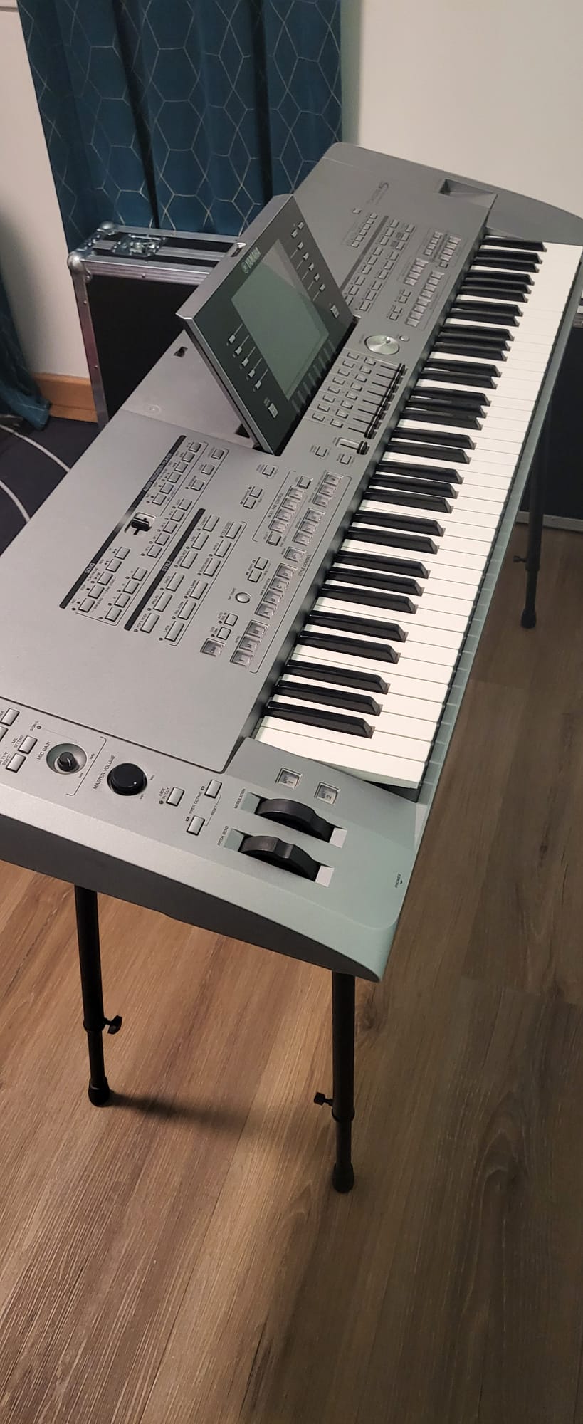 Yamaha Tyros 5 + Enceinte monitoring Presonus Eris E5 + Flycase THON + Pied Gewa + Micro Behringer XM8500 + Pied Micro + Cable