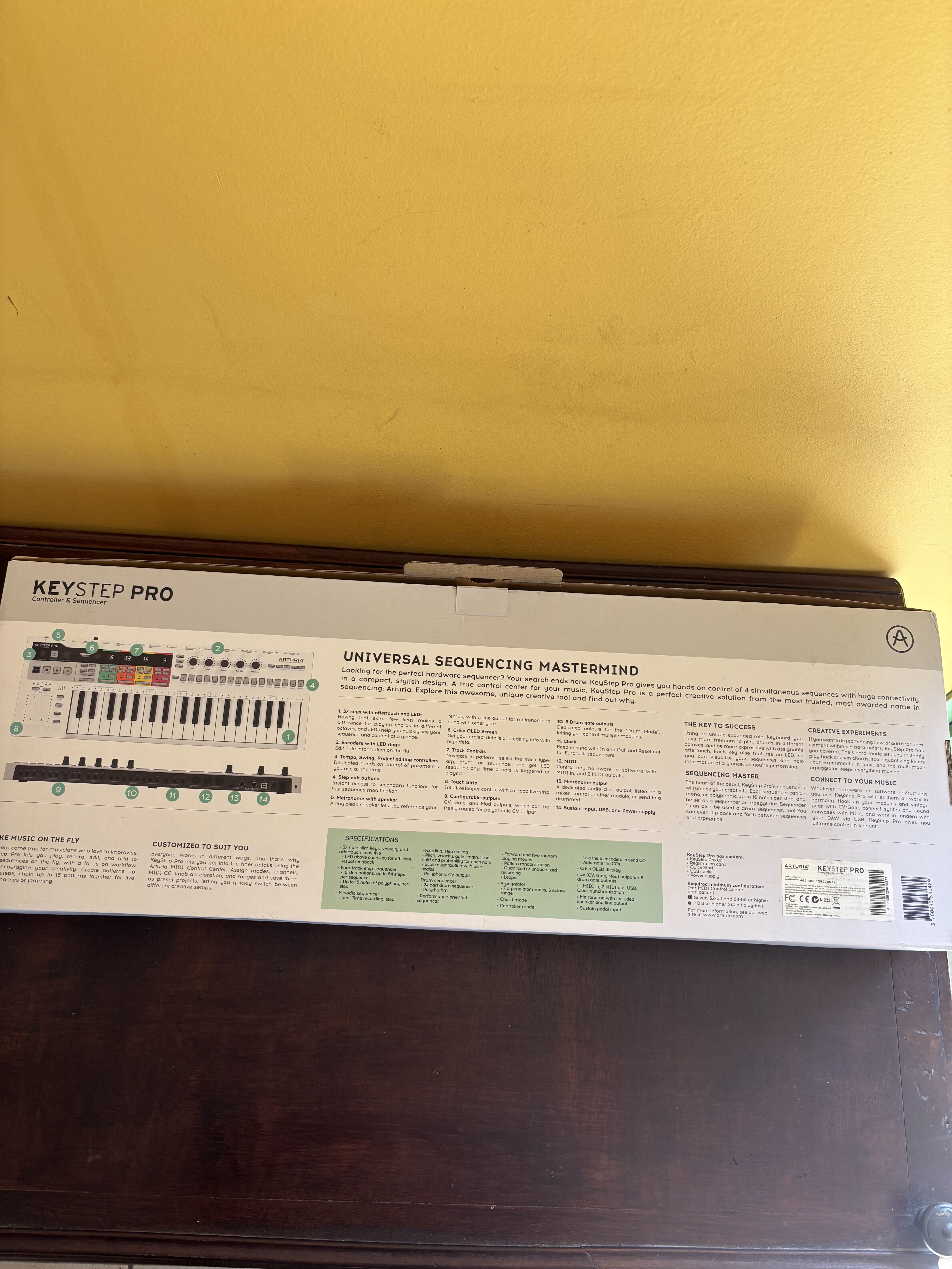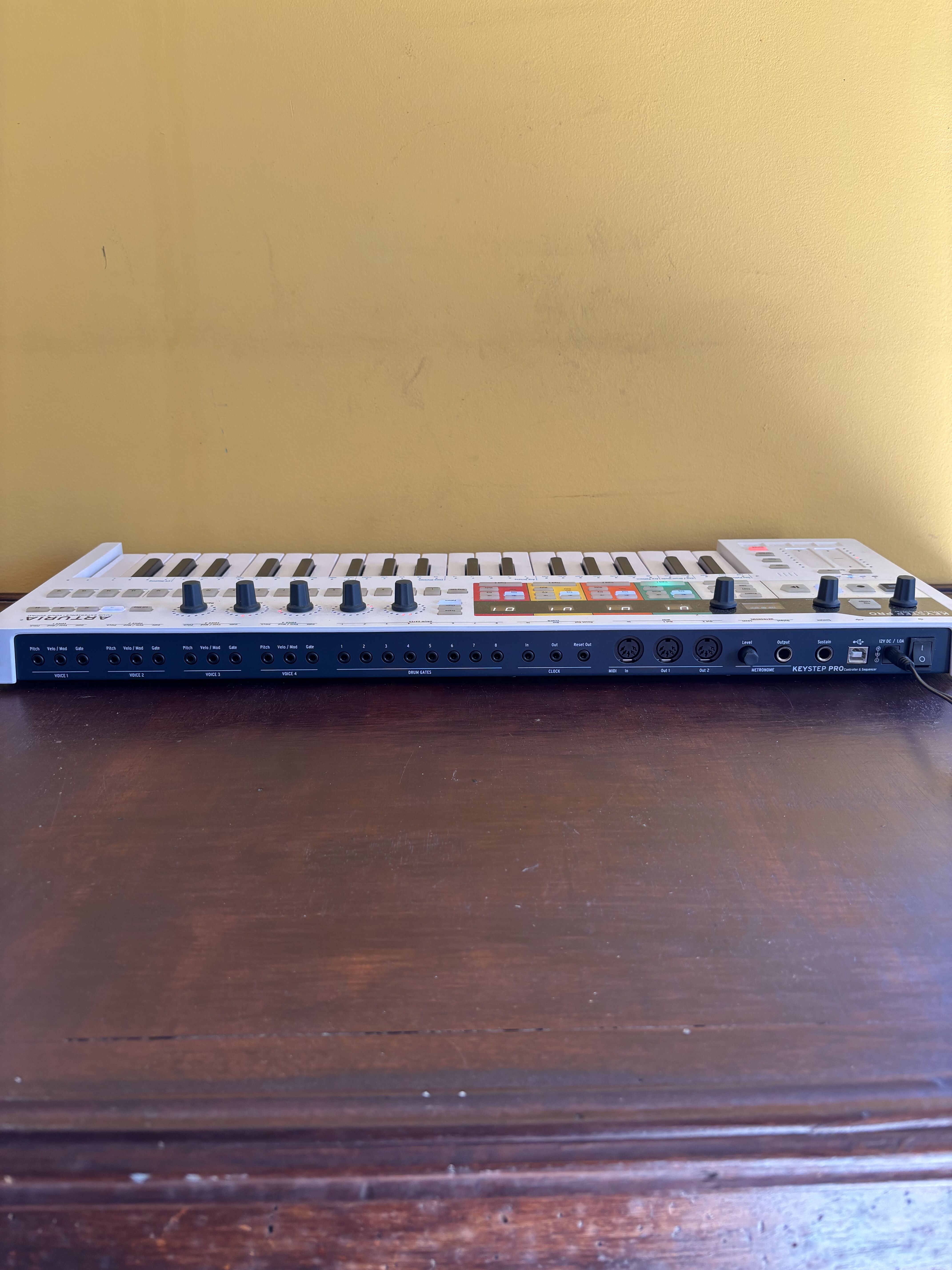 Clavier de 37 mini-touches sensibles à la vélocité avec aftertouchSéquenceur polyphonique de 4 pistes, 16 patterns par piste, 64 pas par pattern et 16 notes par pas