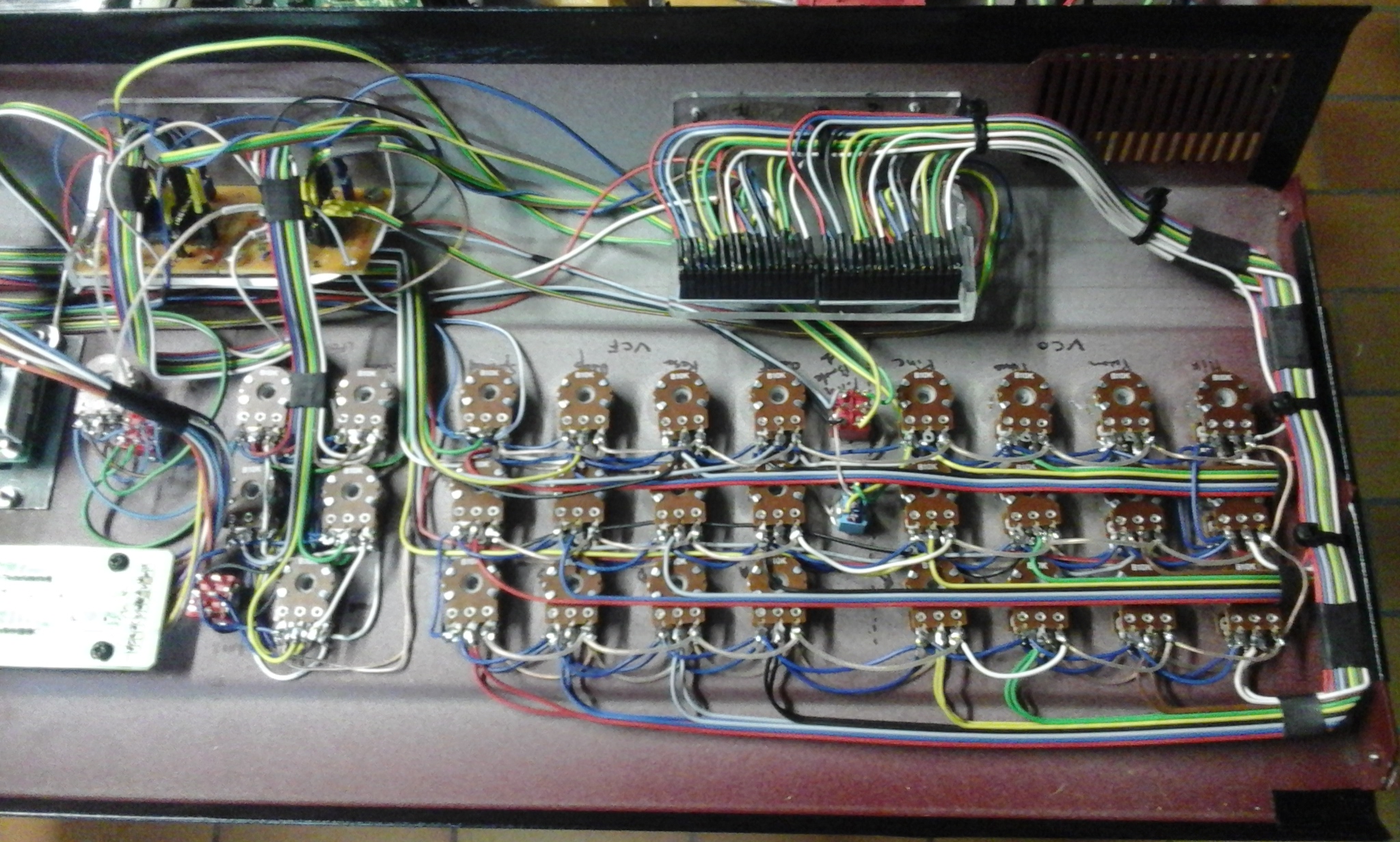 Le raccordement des potars via les multiplexeurs, le M-VS1 découpé et sa façade déportée, ect ...