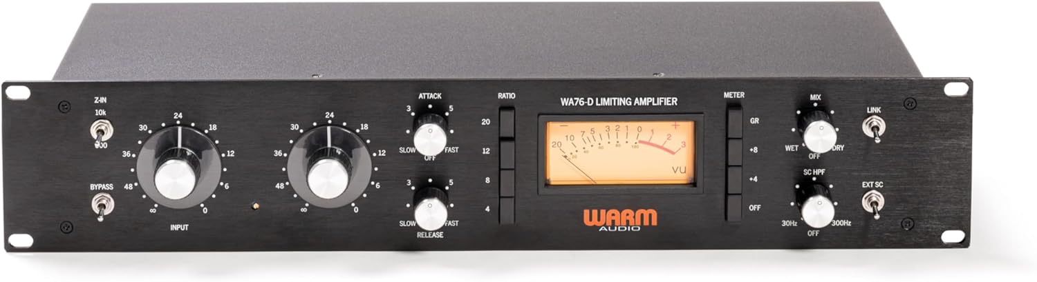Le Warm Audio WA76-D est un compresseur analogique FET monocanal au format rack 1U. Fidèle à la révision D originale, il offre un son chaleureux, des fonctions modernes comme le mix dry/wet, un filtre passe-haut sidechain et des transformateurs CineMag pour une qualité sonore exceptionnelle. Idéal pour les professionnels recherchant un traitement audio précis.