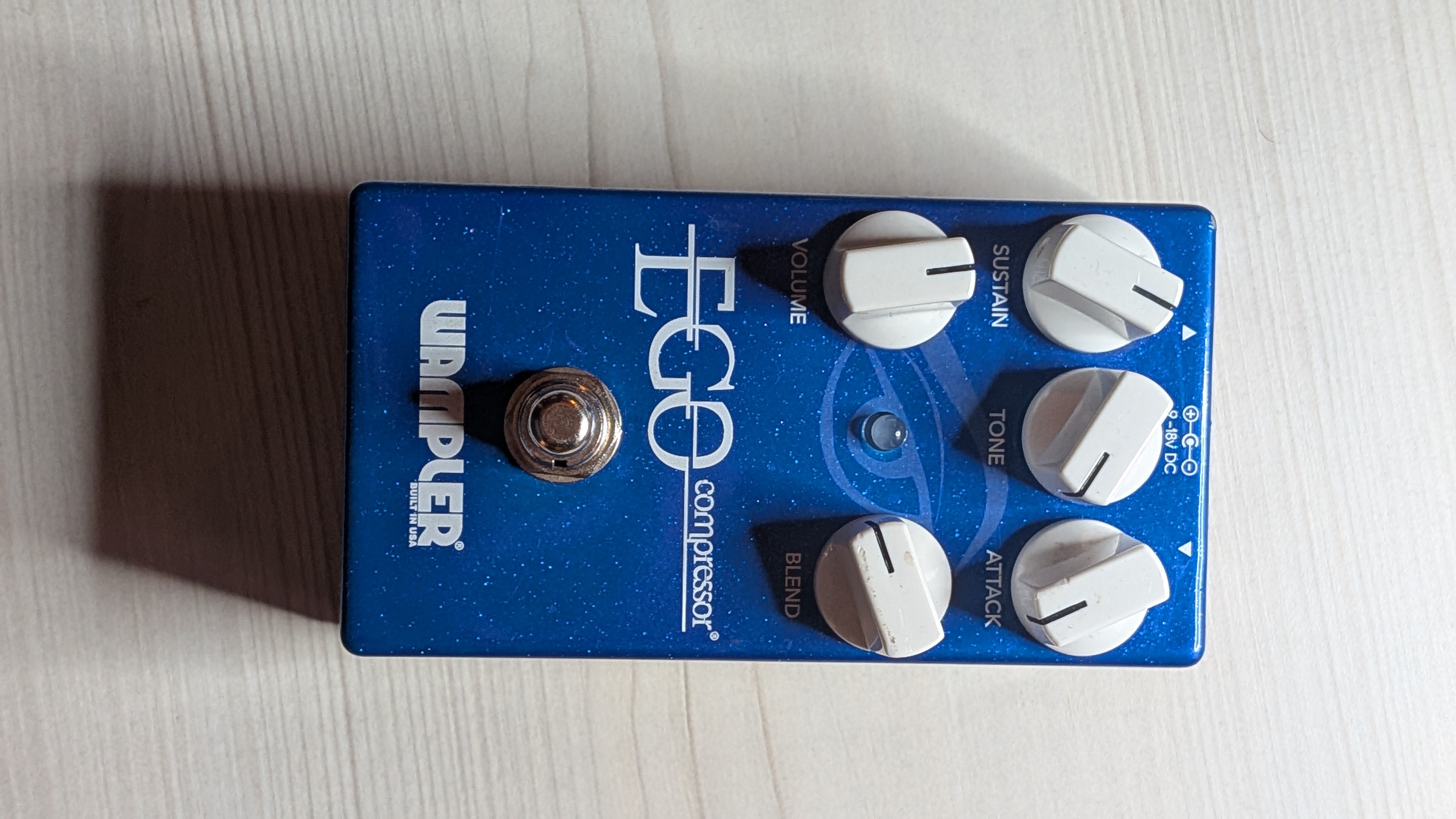 Je vends cette pédale d'effet Wampler Ego, un compresseur pour guitare.
