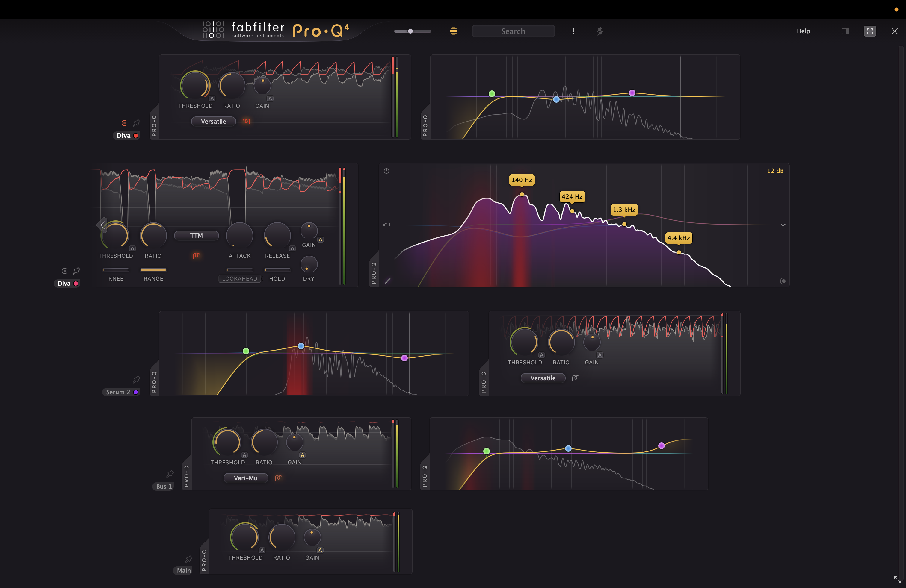 Bref, comme vous le voyez, Fabfilter ne s’est pas moqué du monde avec cette mise à jour, au point qu’on voit mal ce que l’on pourrait reprocher à Pro-C 3 en l’état. Fidèle à lui-même, l’éditeur a grandement amélioré son plug-in sans céder aux sirènes de l’émulation stricto-sensu comme à celles de l’intelligence artificielle. Il en résulte un outil incroyablement polyvalent, un « go to » plug-in capable de remplacer nombre de compresseurs logiciels que l’on accumule parce qu’ils sont complémentaires : finis le 1176 et le LA2A sur la voix, le DBX sur la batterie et le SSL sur le bus, on peut tout à fait mettre Pro-C partout, avec le confort de pouvoir passer d’une instance à l’autre via la fameuse vue « Exposé »… Disons juste que dans le sillage de l’auto-seuil, on aurait bien vu un module de suivi de gain plus complet comme on en trouve en entrée du smart:comp 3 de Sonible. Pour le reste, c’est parfait…