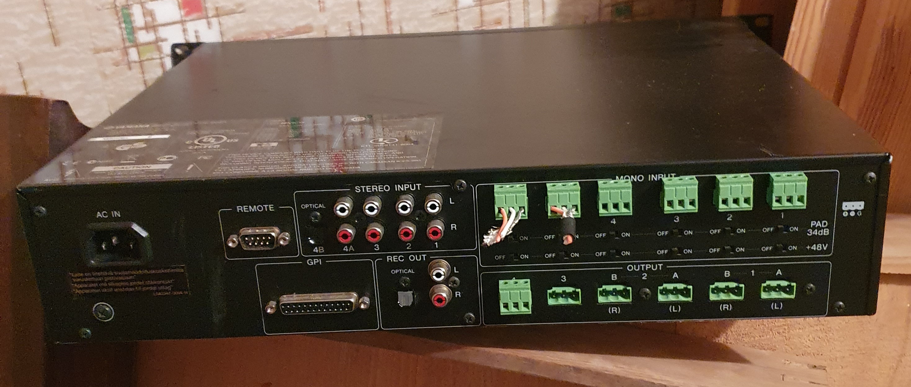 Yamaha IMX 644 mixer multizone numerique pro à 4 zones de sorties réglables. Idéal pour restaurant ou bar musical pour gérer plusieurs salles ou systèmes de diffusion. 6 entrées mono + 4 stéréo Avec feedback suppresseur de larsen et compression auto par vocal (auto-ducking) 16 mémoires de scène avec réglages de tous paramétres - Pilotable en USB par logiciel - 2U rackable - parfait état