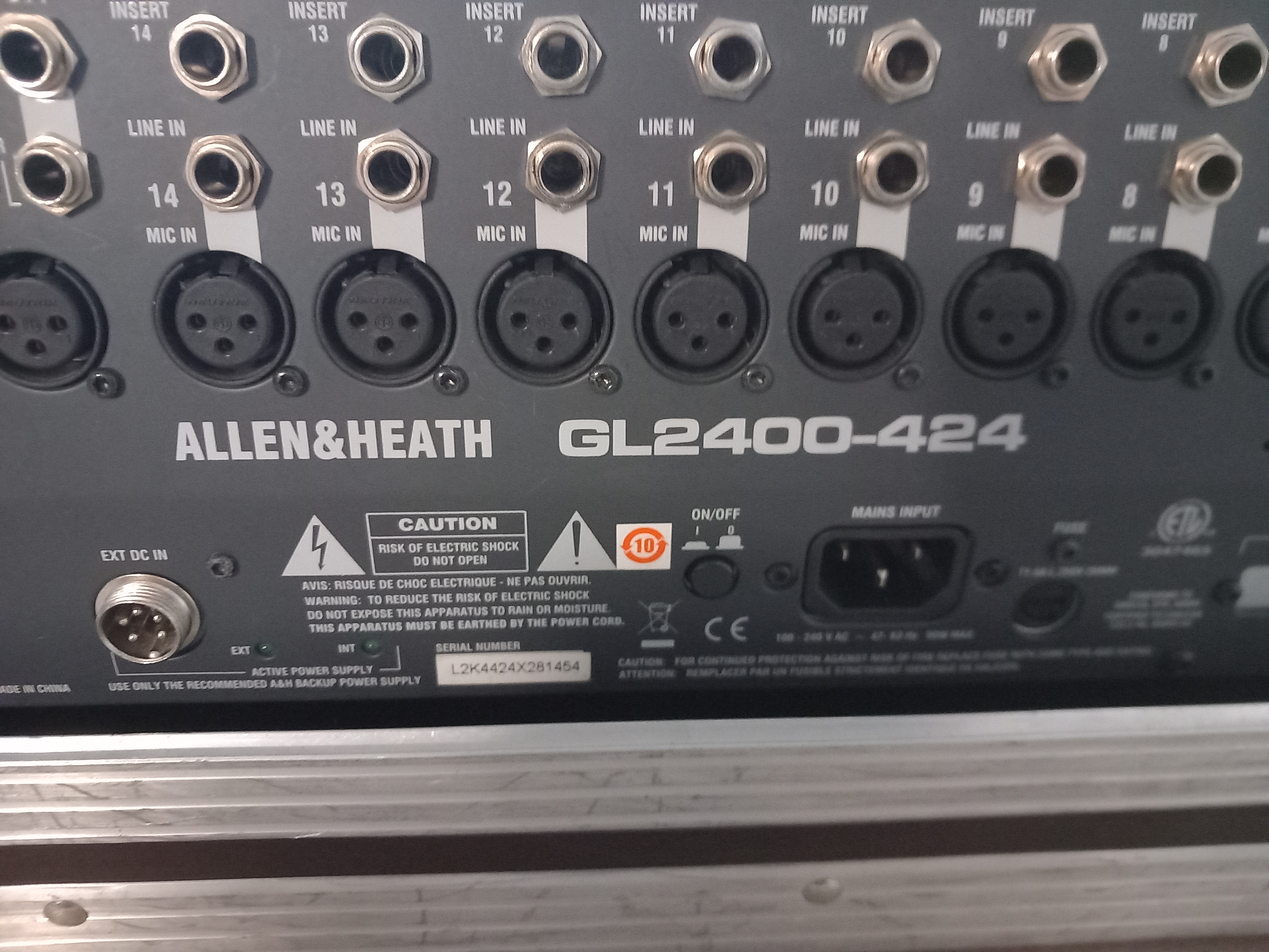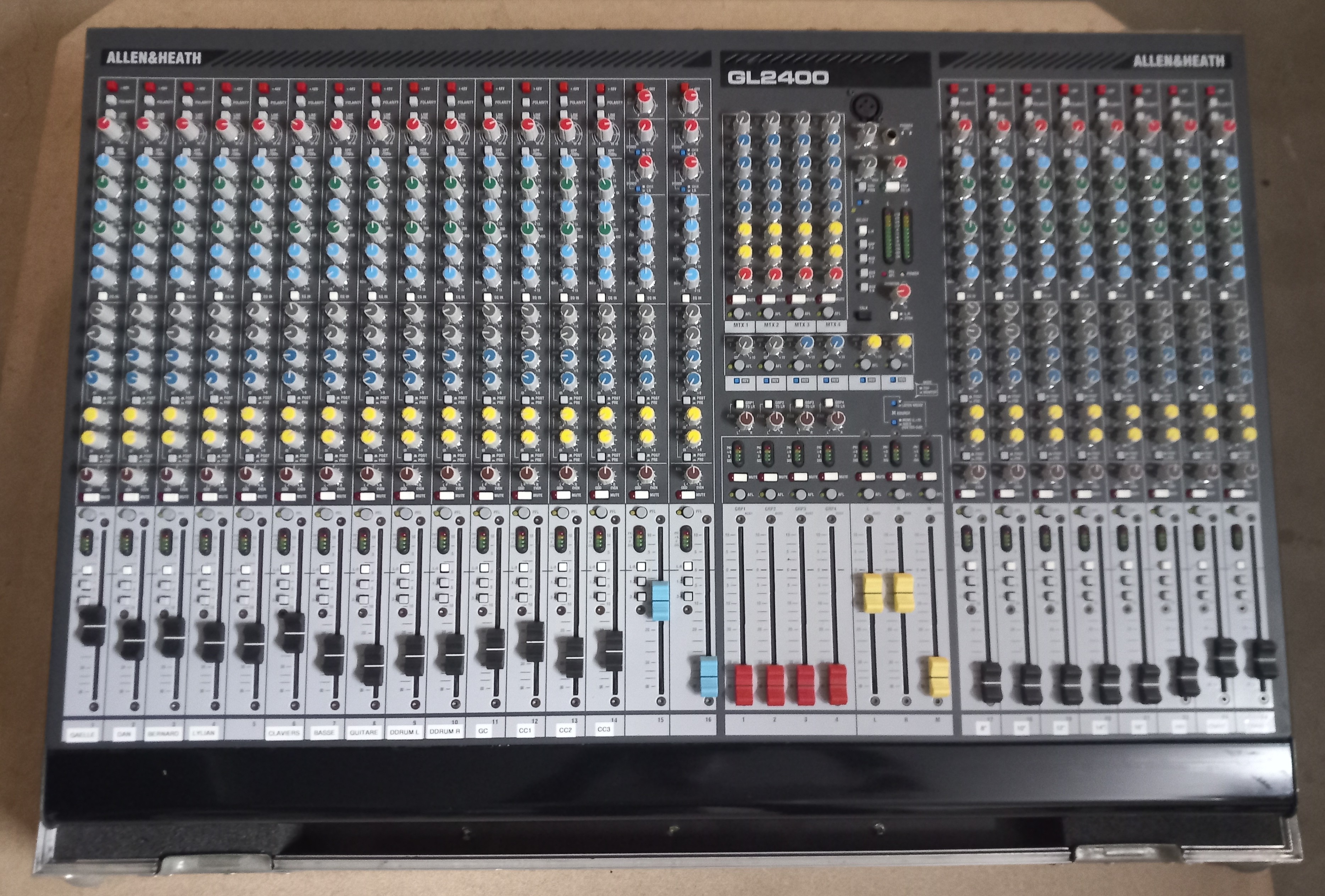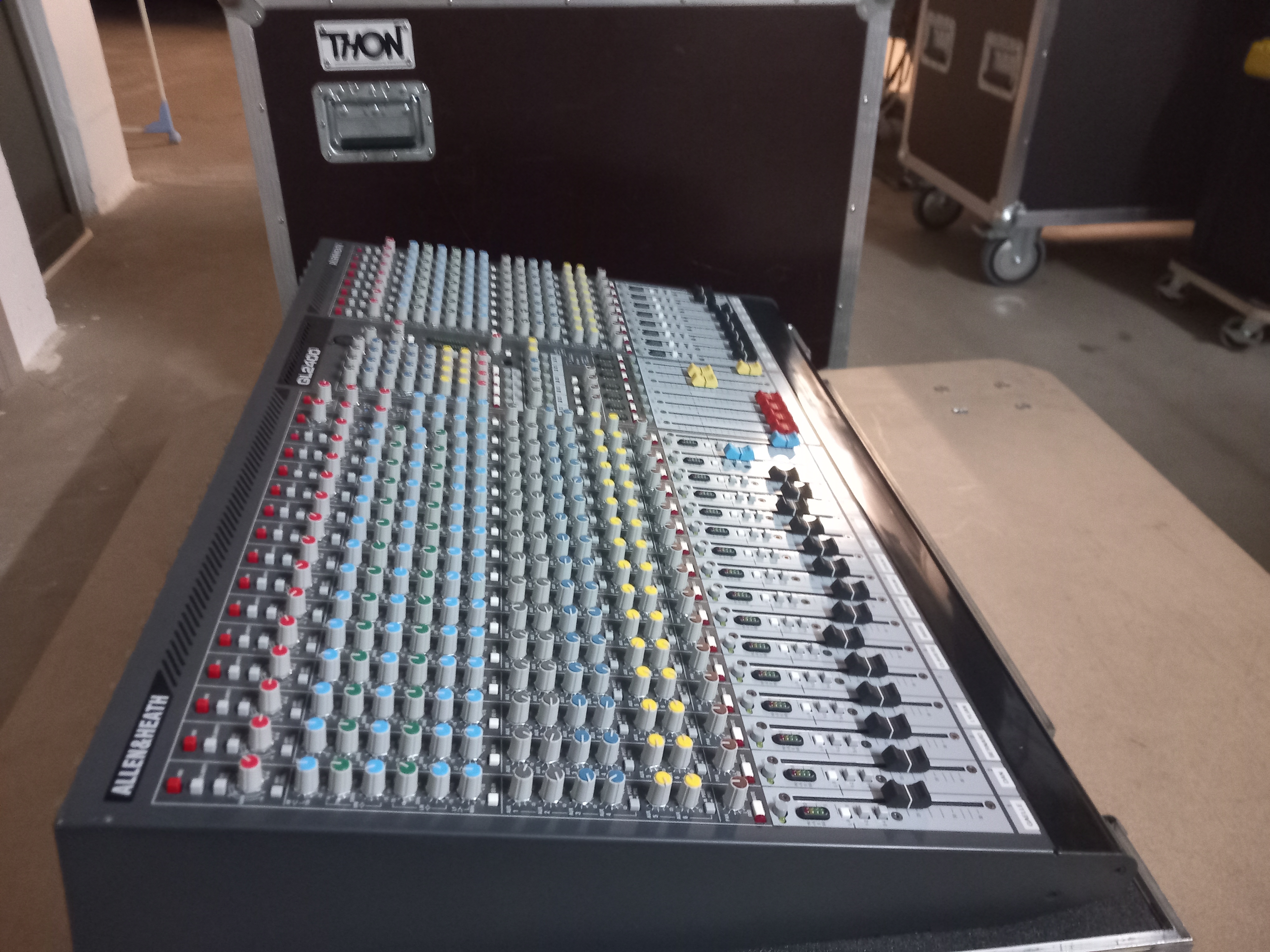 Console de mixage Allen & Heath GL2400-424 + flight case dans un état impeccable tant fonctionnel qu'esthétique (matériel utilisé avec précaution et toujours stocké au sec dans son flight) + multi-effet Behringer FEX800 en parfait étatNotice complète en français et en couleur.
