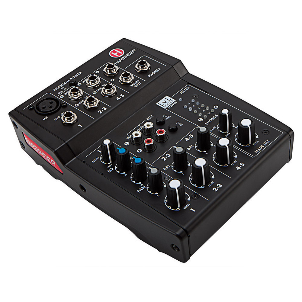 La nouvelle série Harbinger LvL comprend trois consoles de 5, 8 et 12 canaux, toutes équipées de préamplis micro avec alimentation fantôme, d’égaliseurs, d’indicateurs de niveaux d’entrée et de crête à LED sur chaque canal et d’un indicateur principal à LED 5 segments.