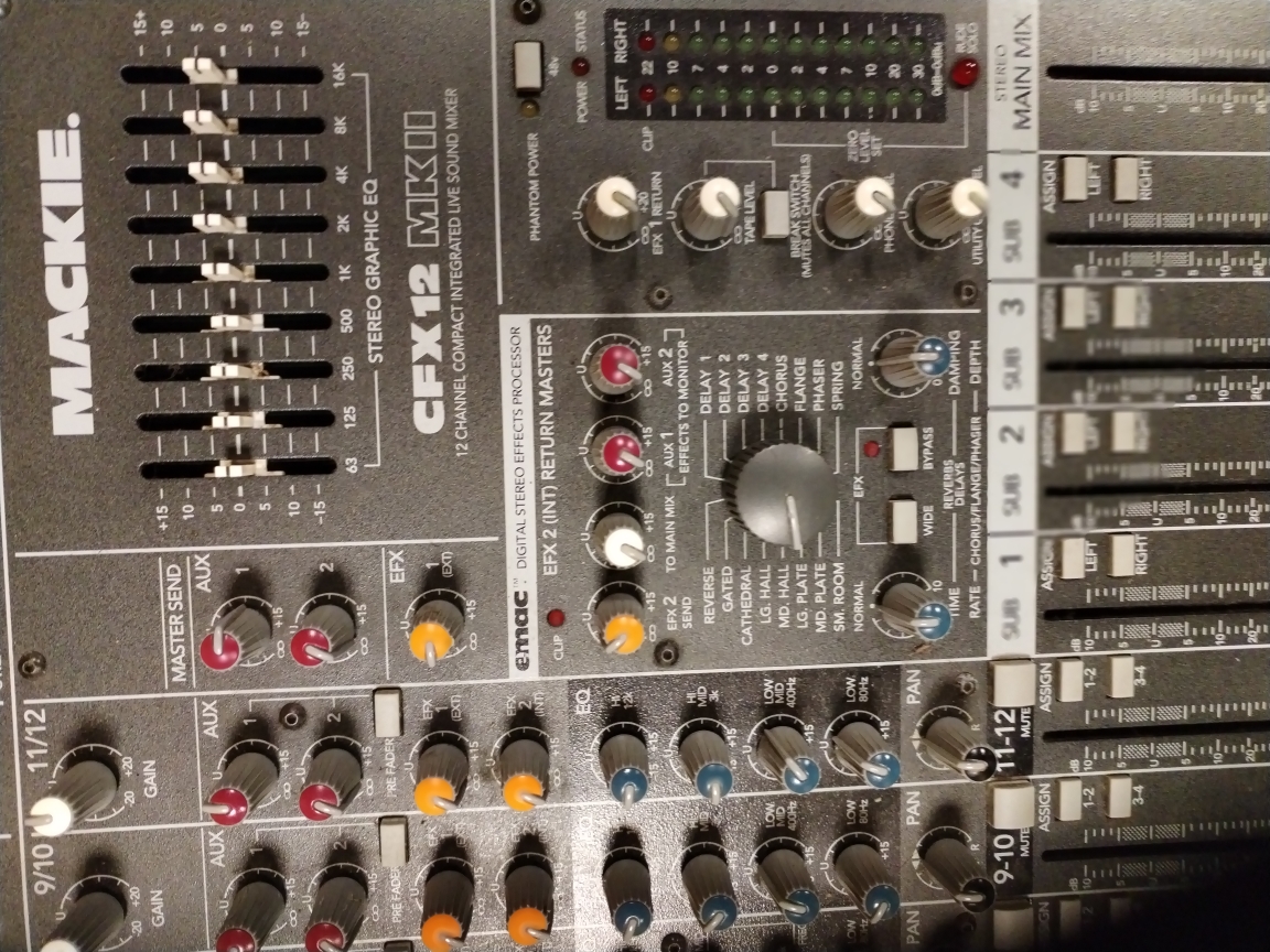 Table de mixage 12 pistes.Possibilité de venir la tester lors de l’une de nos répétitions les mardis soirs à Fontaines-Saint-Martin.