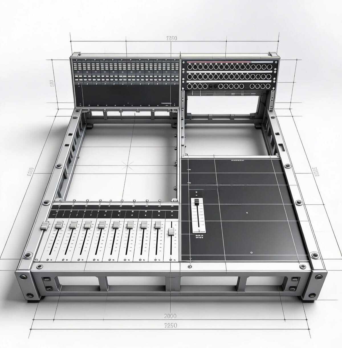 Il faut relier à l'alimentation créer les XLR et Input Output etc ... mettre les tranches dans un chassis existant fourni et le mettre sur pied