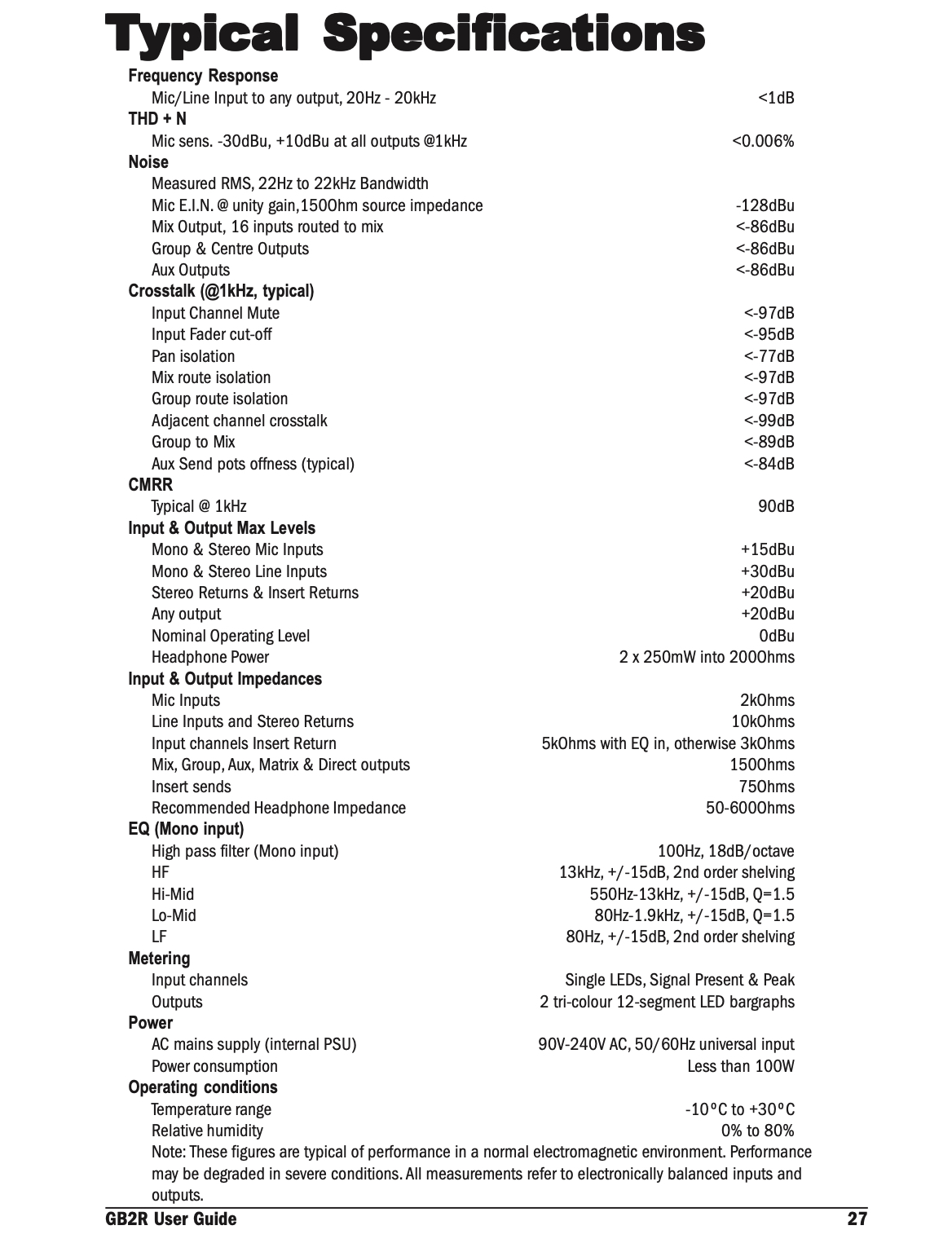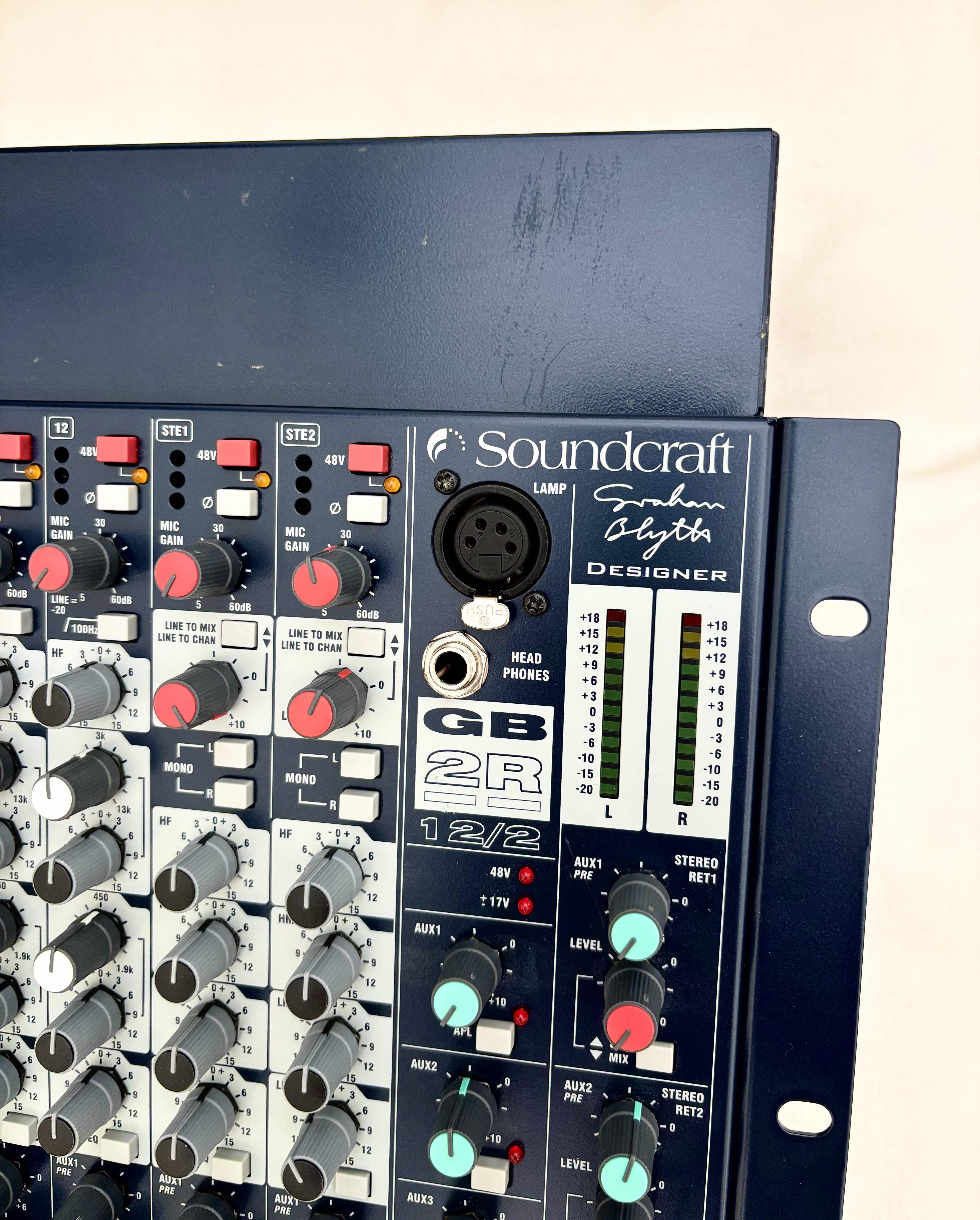 Console très robuste et versatile, en excellent état, pour satisfaire toute exigence (tracking, summing, direct outs, égaliseurs parametriques, hi-pass filters, phantom 48V, inserts partout, 6 aux, send/return fx, bcp d'options de monitoring et routing, Pre Fader Listening, Cue...). Preamps et EQ de qualité (gamme GB de chez Soundcraft). Parmis les dizaines d'applications utiles, je l'ai trouvée aussi très pratique lorsque on voulait par exemple jouer, étudier, répéter sans allumer l'ordinateur, puis revenir au setup PC en poussant une paire de boutons, tout simplement.Utilisée regulièrement pour plusieurs années, toujours avec soin en studio non fumeur, je m'en sépare pour aller vers des nouvelles aventures soniques.