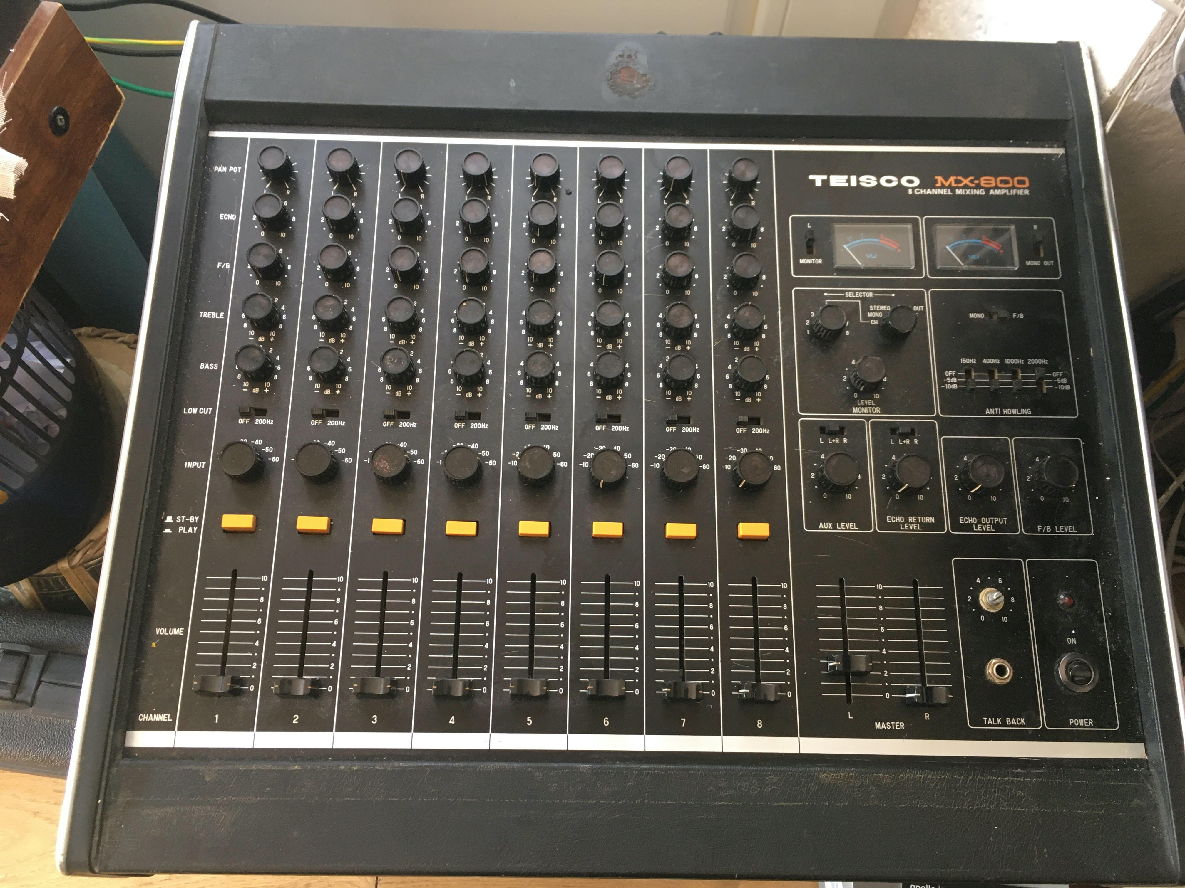 Je vends cette console Vintage Teisco MX800( Made in Japon), pour les amateurs de vieux matos avec un son analogique chaleureux et des basses ronde qui en les poussants ont une belle saturation.