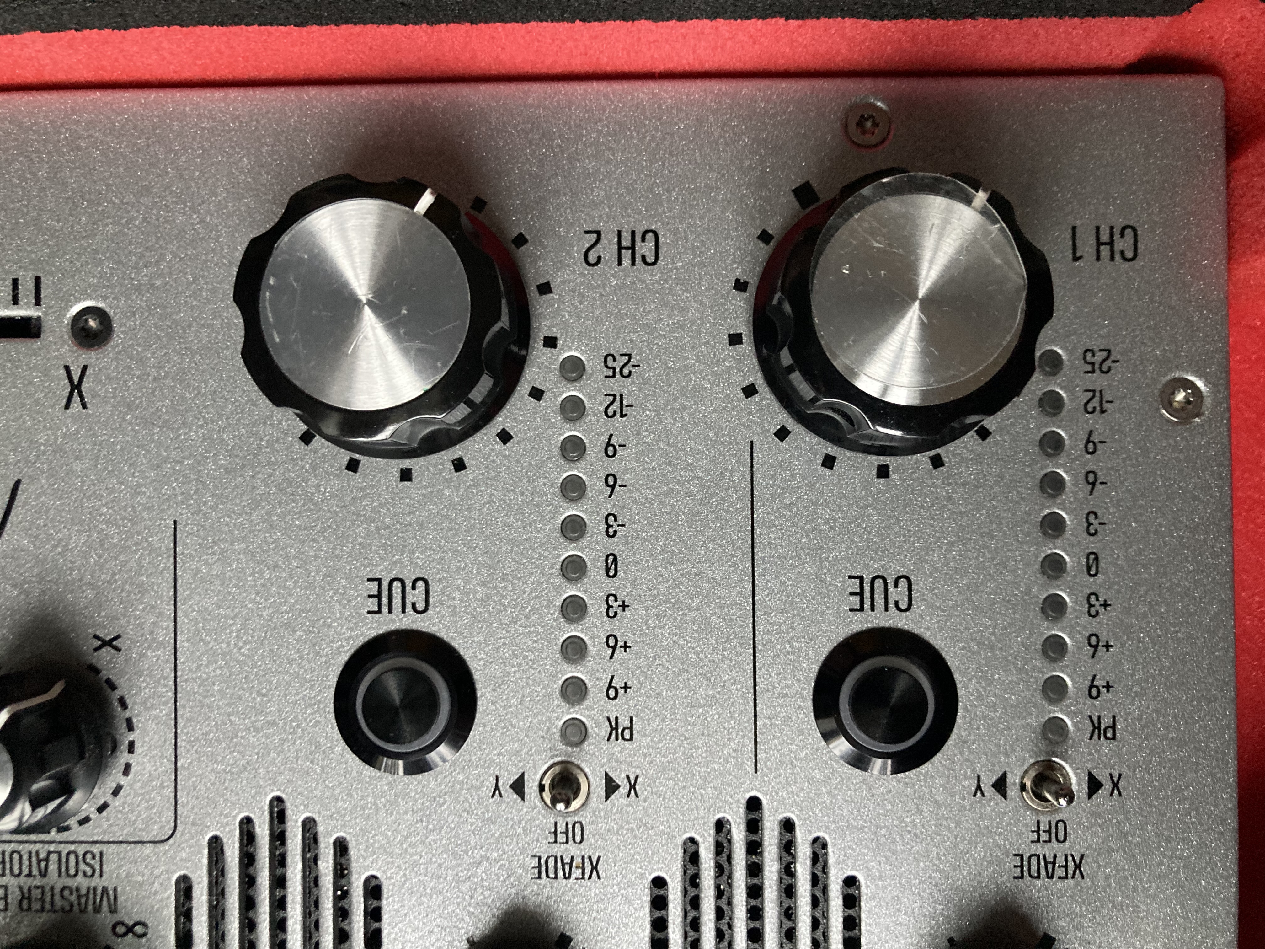 Sortie master en XLR, sortie retour en balanced jack. Sortie record en unbalanced RCA. Cross-fader, LED et VU mètres de repère.