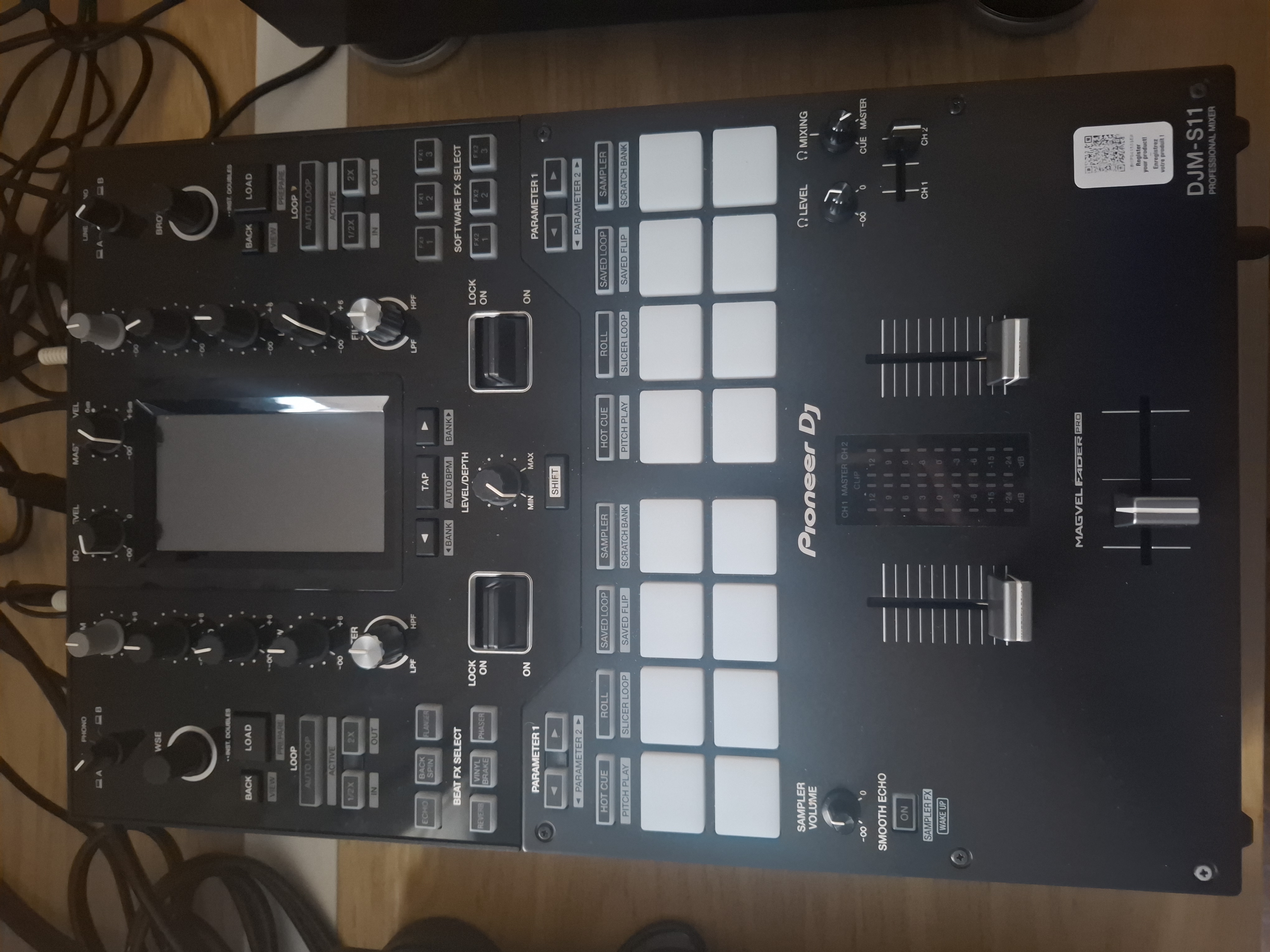 Je me sépare de la table de mixage DJM-S11 de chez Pioneer d 'une excellente qualité, en effet elle tiens c'est promesse.Acquis un peu prés il y a 1ans elle est encore sous garantie, je m'en sépare pour me financer une opération, et oui la santé d abord!