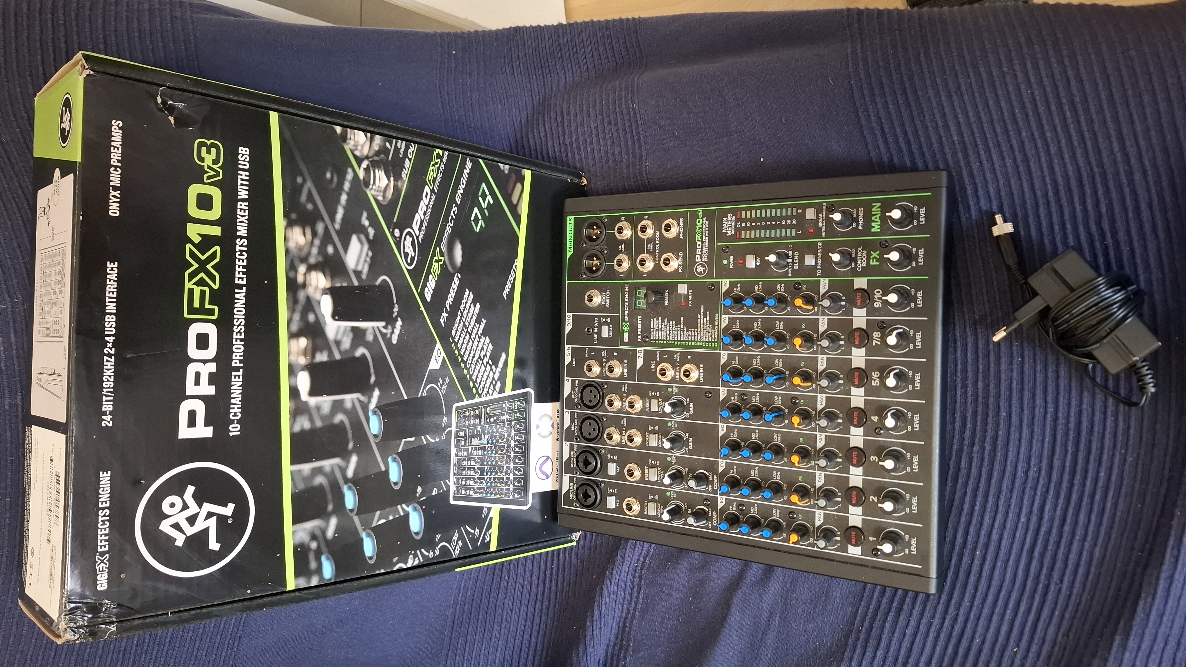 Je vends cette table de mixage très complète avec son alimentation et sa boîte d'origine. Je dois cependant signaler que certaines sorties (notamment la sortie XLR de droite, ainsi que la sortie ligne de droite) ont tendance à saturer et qu'il ne faut pas compter sur elles. J'imagine que ce n'est pas très embêtant, si on veut sortir en mono de toute façon, et si vous voulez absolument de la stéréo, la sortie casque fonctionne très bien. Cela explique cependant le petit prix.Le ProFX10v3 dispose de quatre nouveaux préamplis Onyx primés et d'un moteur de 24 effets GigFX polyvalent (dont 8 nouveaux) qui permet d'obtenir des enregistrements haute résolution avec des fréquences d'échantillonnage allant jusqu'à 192 kHz