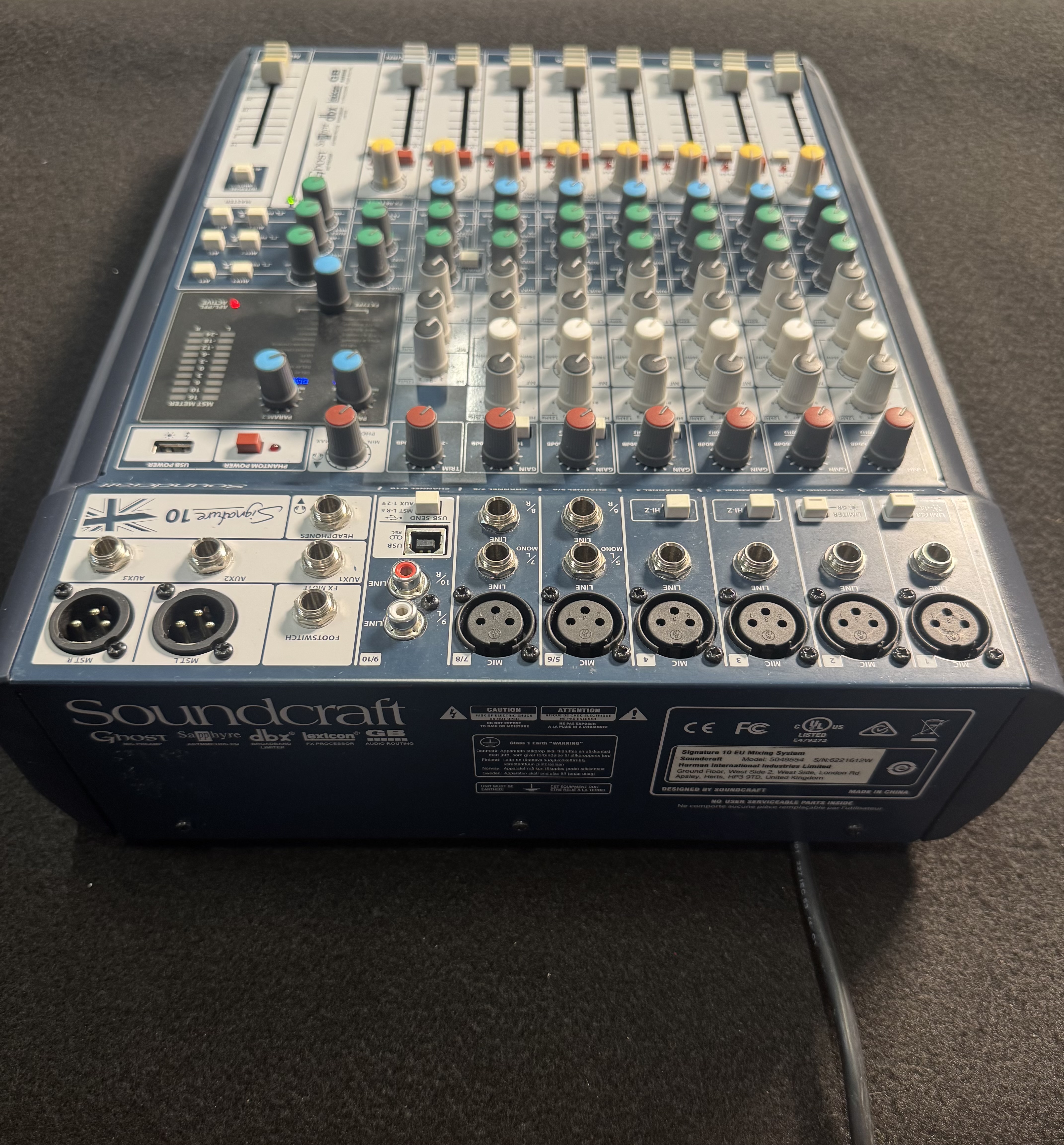 - Renowned Soundcraft® Sapphyre British EQ with sweepable mid-bands per channel