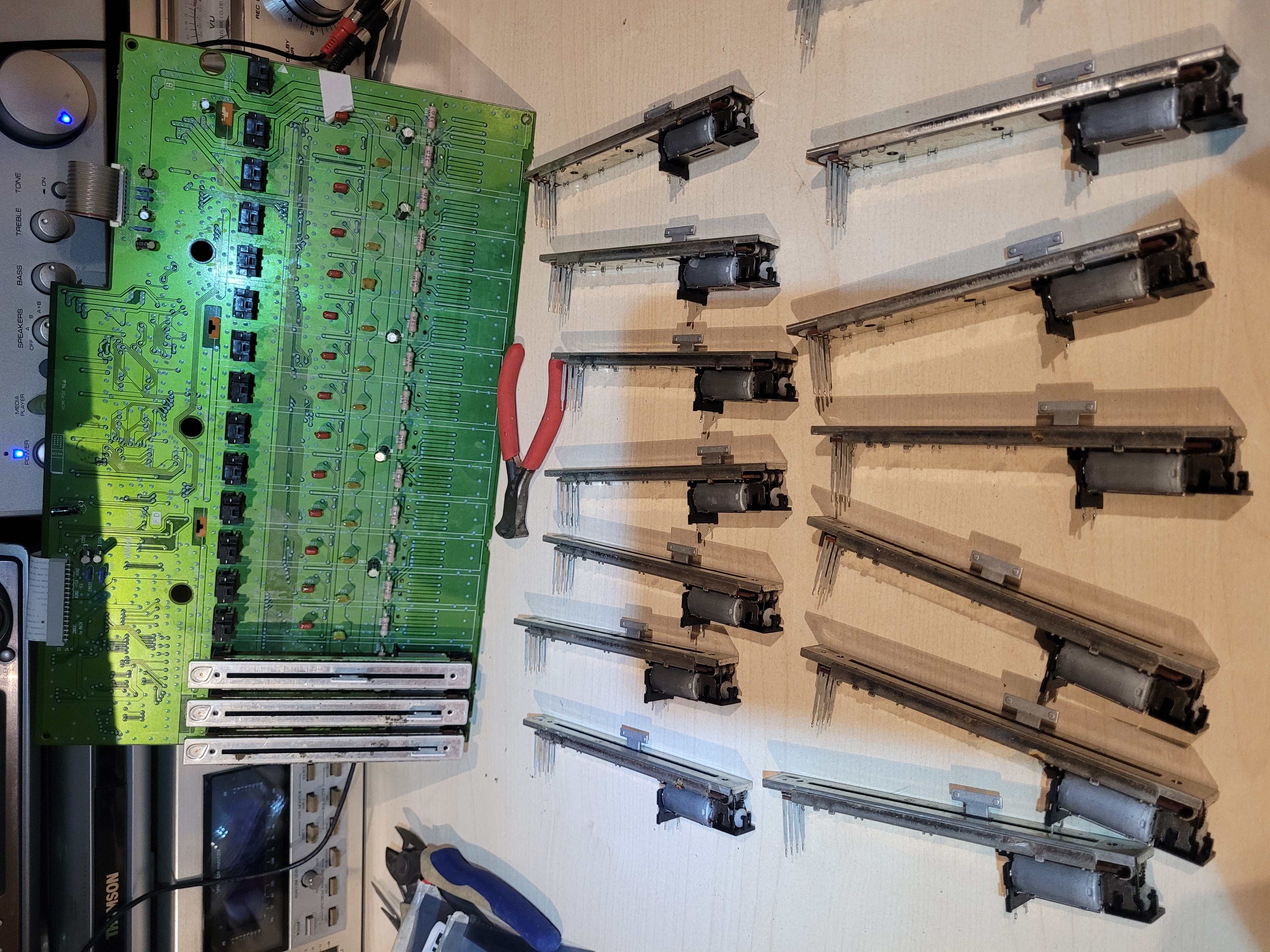 Les faders ont reçu un vrai démontage pour nettoyage complet des pistes au chiffon doux ainsi qu'une lubrification des guides (et pas juste un coup de bombe contact au travers du guide qui ne sert à rien)