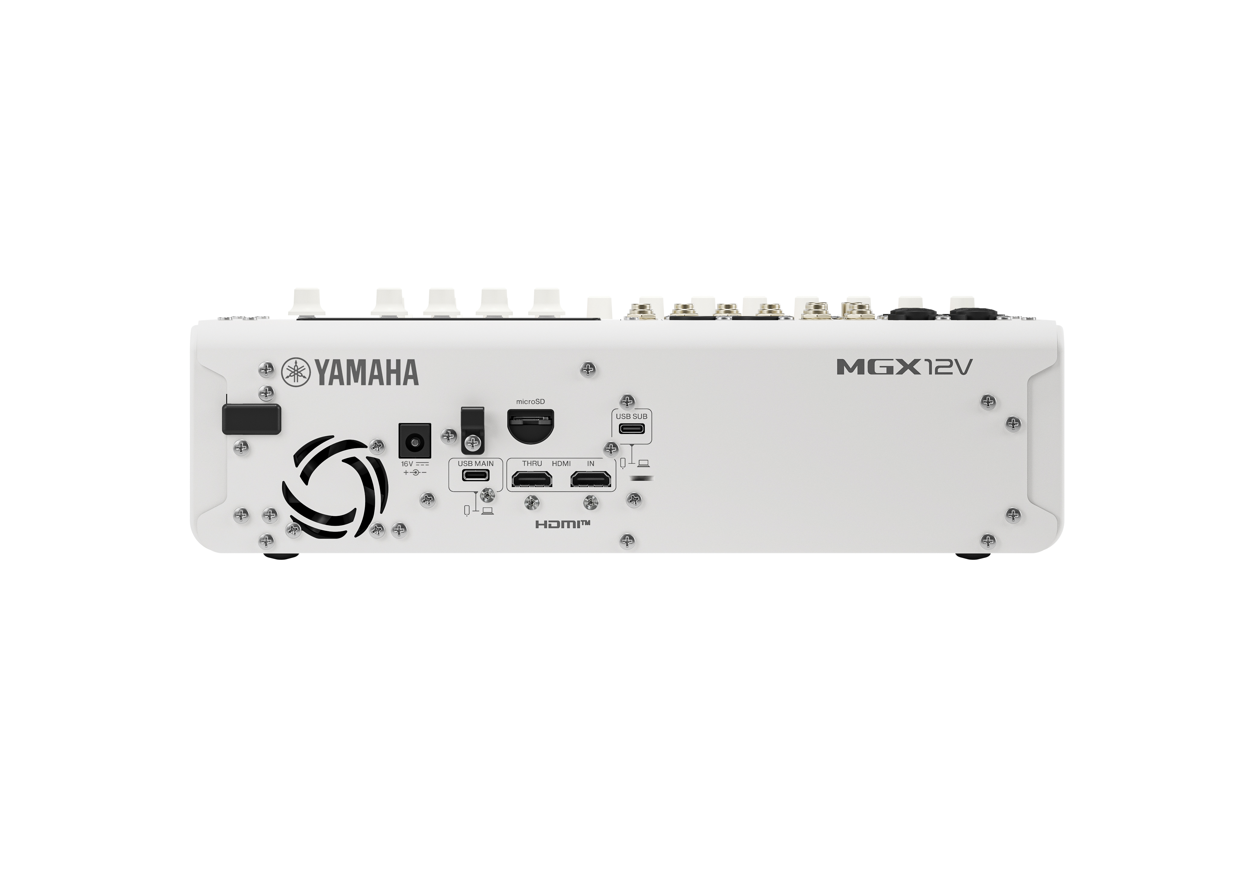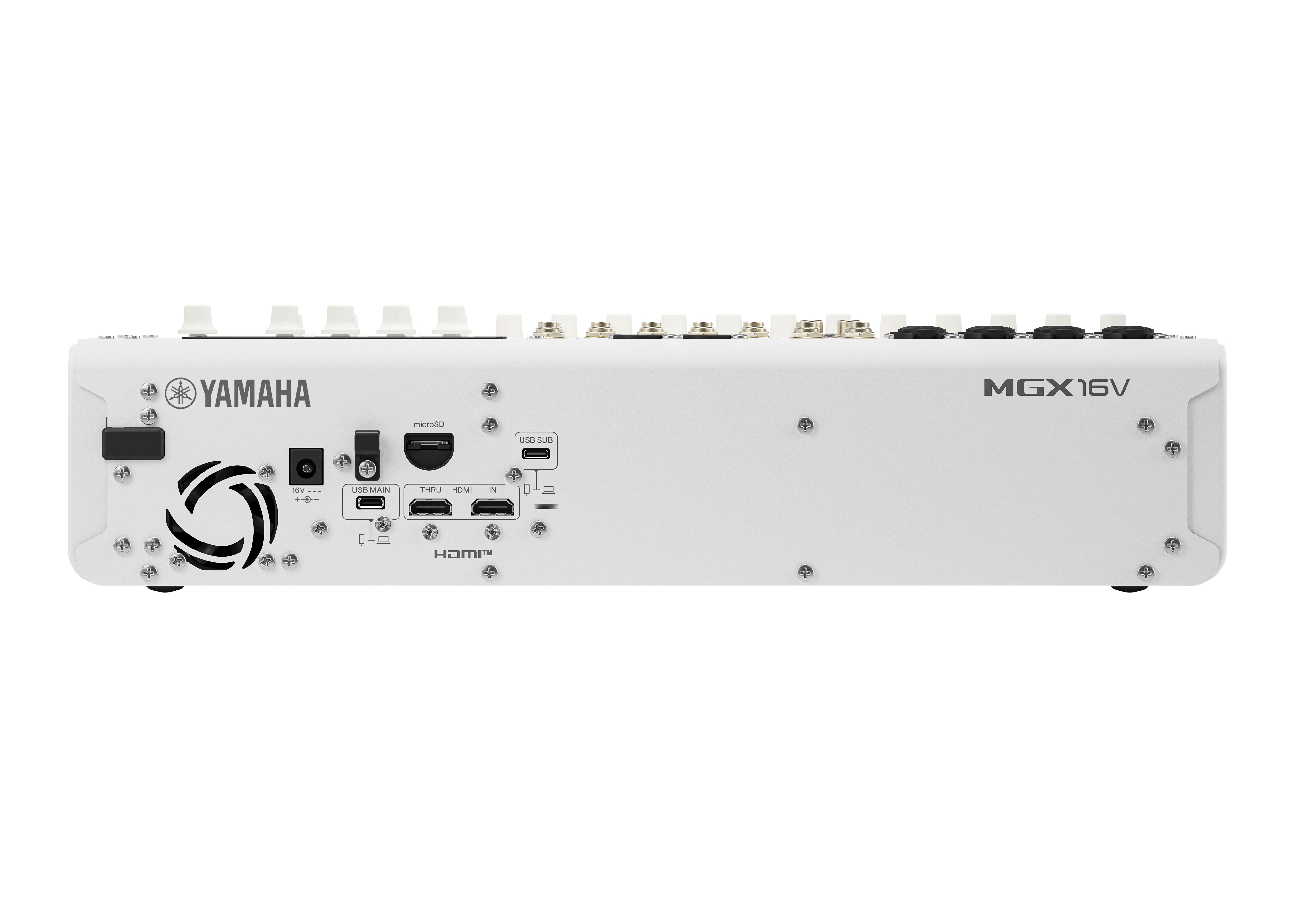Les nouvelles consoles de la série MGX sont proposées en plusieurs déclinaisons : MGX12, MGX12V, MGX16 et MGX16V. Il s’agit de consoles de mixage numériques avec une interface audio intégrée 32 bits / 96 kHz. Les modèles MGX12 et MGX12V disposent de 12 curseurs linéaires de 60 mm, 4 entrées combo micro/ligne avec préamplis Yamaha Premium (réserve de gain : 86 dB), 8 entrées ligne (4 mono, 4 stéréo) et 6 sorties omni TRS. Les modèles MGX16 et MGX16V disposent quand à eux de 16 curseurs linéaires de 60 mm, 8 entrées combo micro/ligne avec préamplis Yamaha Premium (réserve de gain : 86 dB), 12 entrées ligne (8 mono, 4 stéréo) et 8 sorties omni TRS. La différence notable entre les modèles V et les autres est la présence d’un port HDMI pour la capture et la transmission 4k (uniquement sur les versions V).