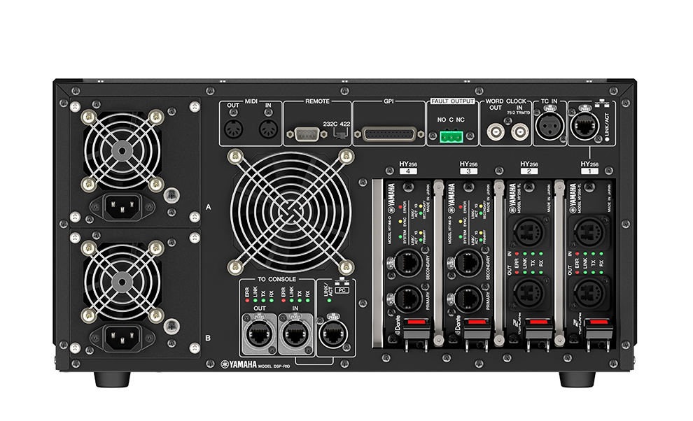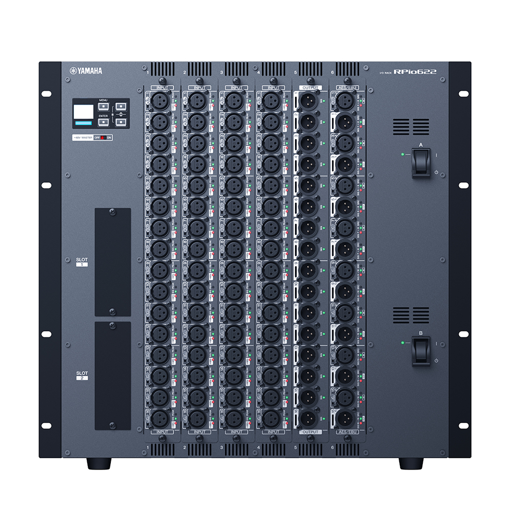 La console est complétée par un patchbay rackable (RPio622) comprenant toutes connexions d’entrées, le moteur DSP-R10 et vous pourrez ajouter des cartes d’interface audio de série RY (16 entrées micro/ligne RY16-ML-SILK, 16 sorties analogiques RY16-DA ou 16 canaux numériques AES/EBU RY16-AE).