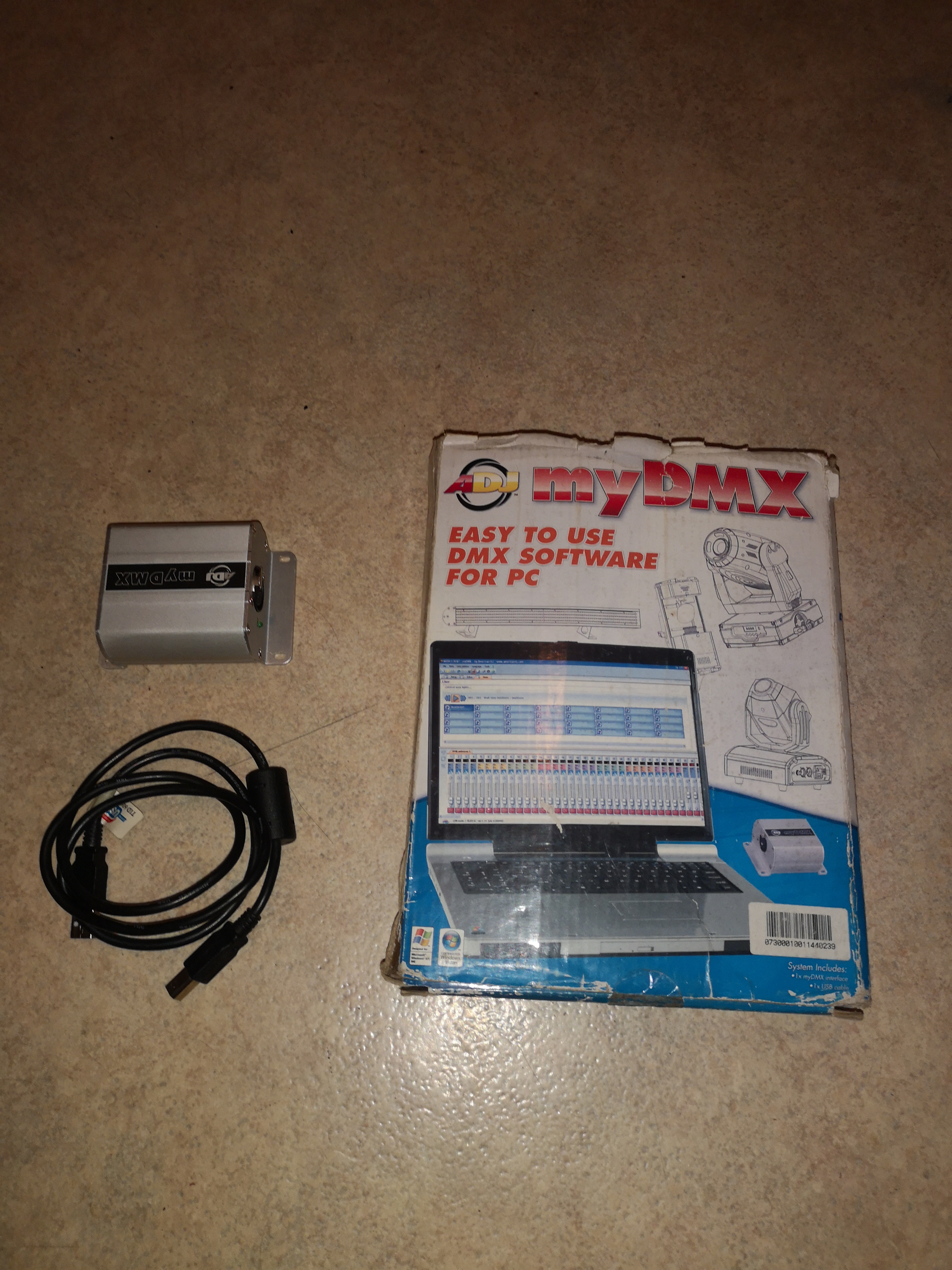 Je vends ce contrôleur DMX ADJ myDMX, un logiciel facile à utiliser pour PC permettant de contrôler vos éclairages.