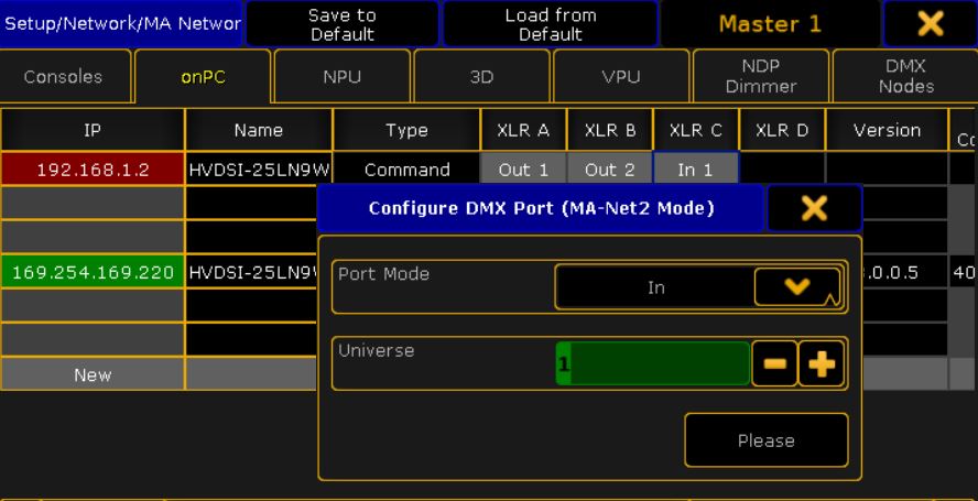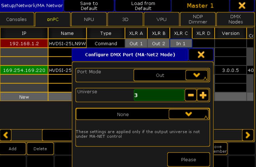 et on change le PORT MODE en out et UNIVERSE EN 3