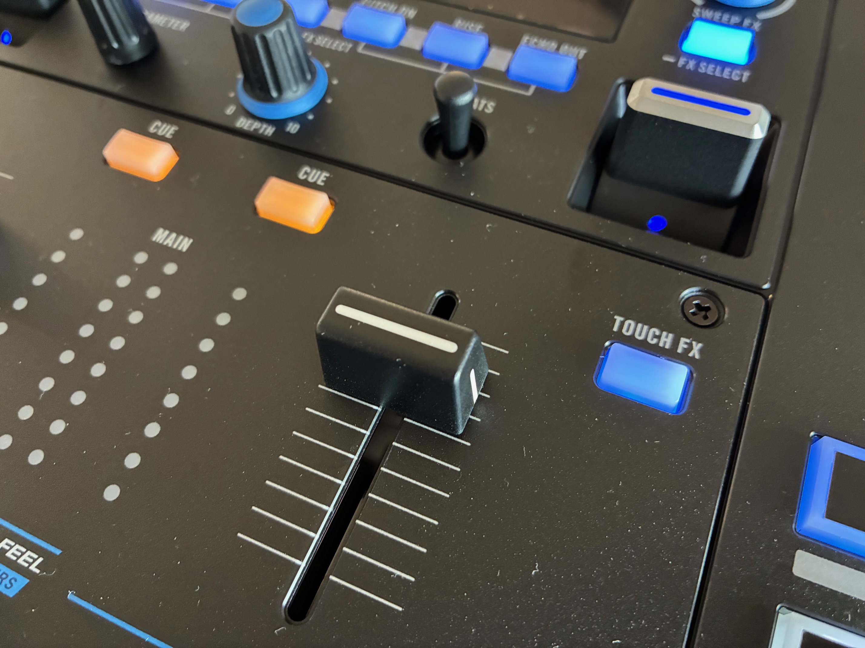 Les deux curseurs linéaires Precision Feel, ajustables et réversibles, sont complétés par un crossfader Mag Four XF. Point important, la dureté du crossfader est réglable sur une plage vraiment très confortable, qui conviendra sans aucun doute à tous les styles de DJing, du beatmatching electro le plus élémentaire aux séances de scratch virtuose endiablées.