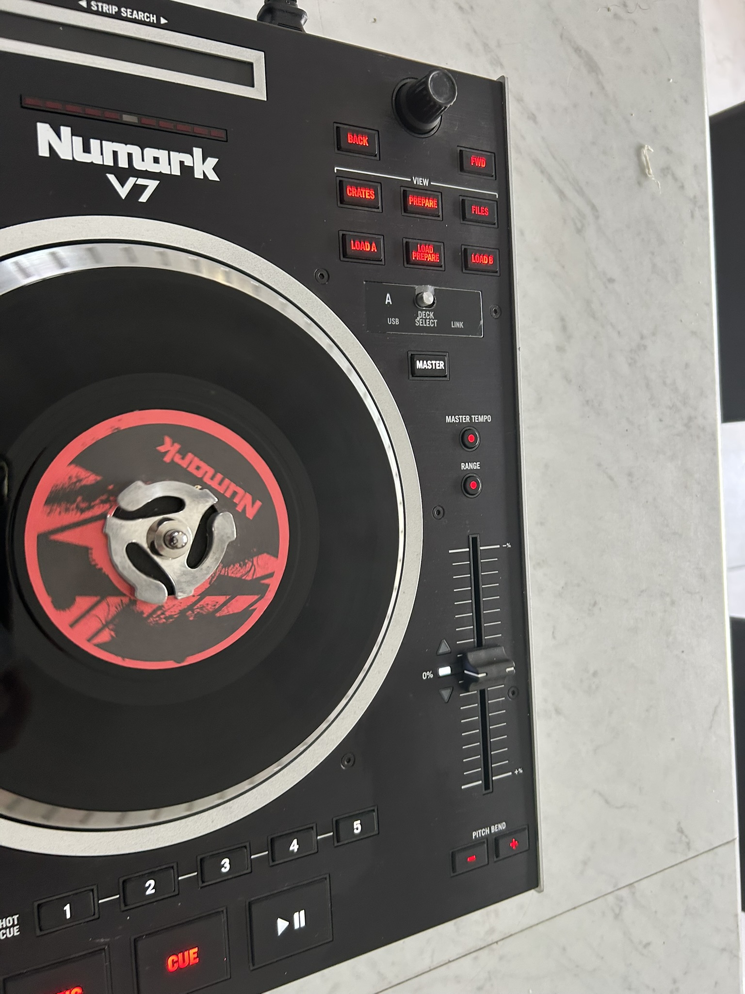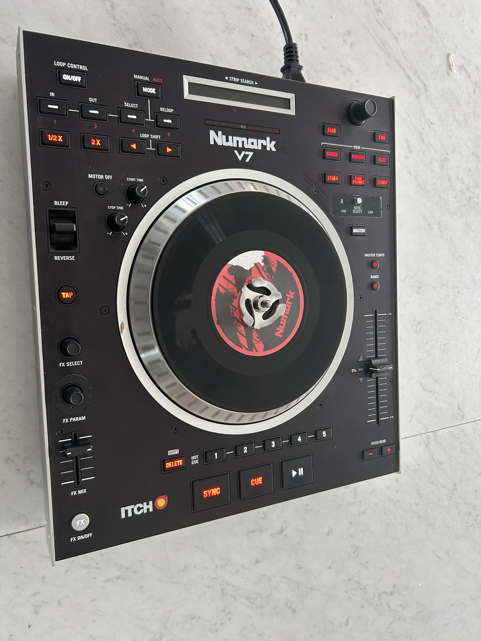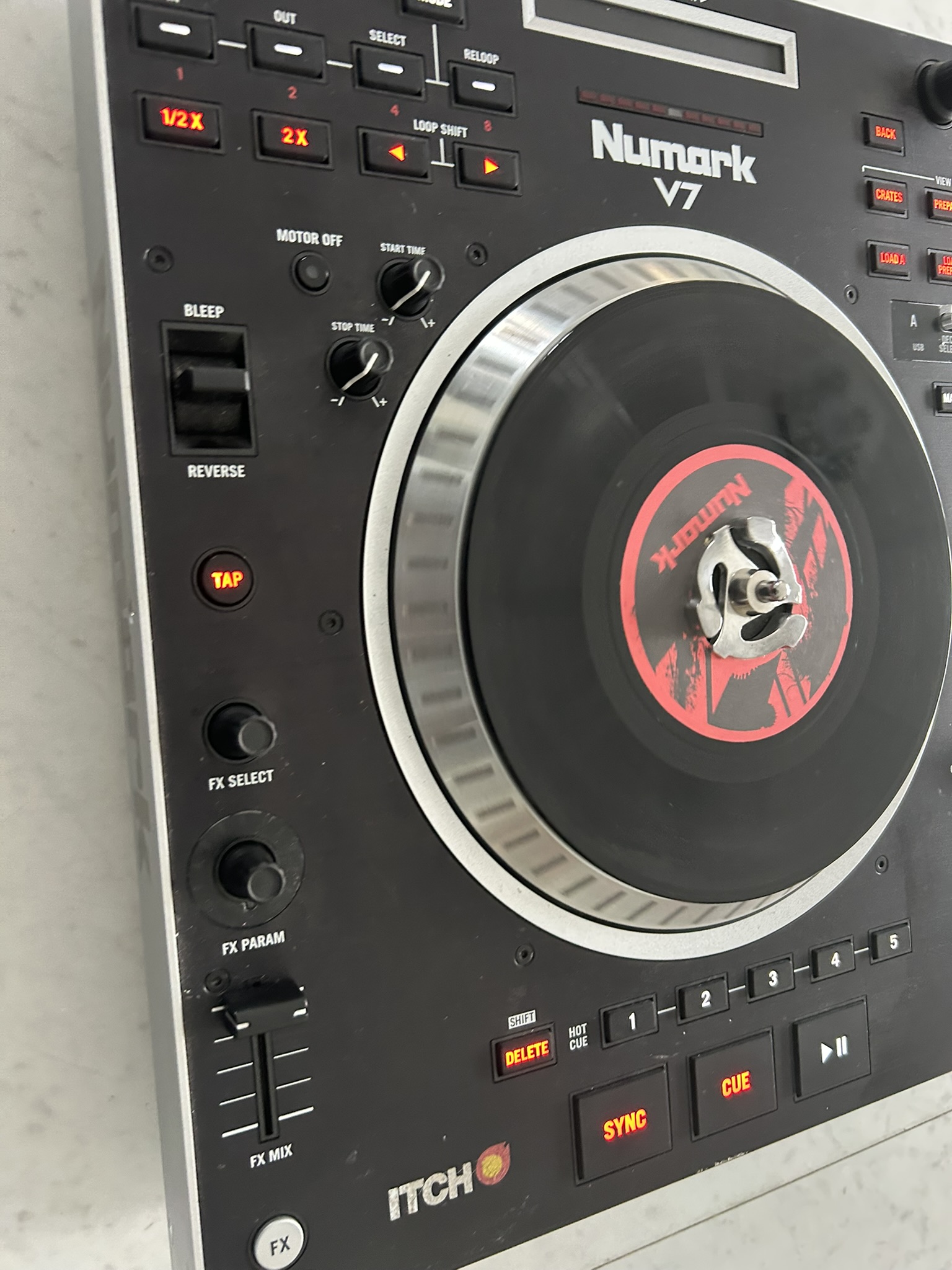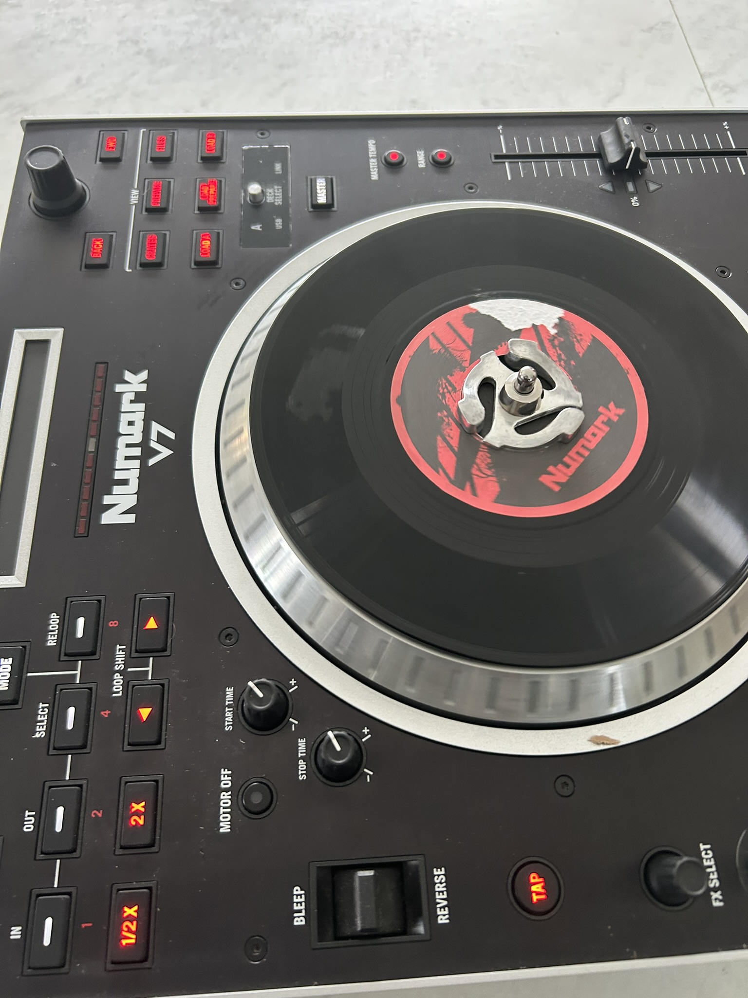 Contrôleur DJ USB Numark DJ V7 - NoirPlateau tournant alimenté par un moteur à entrainement direct