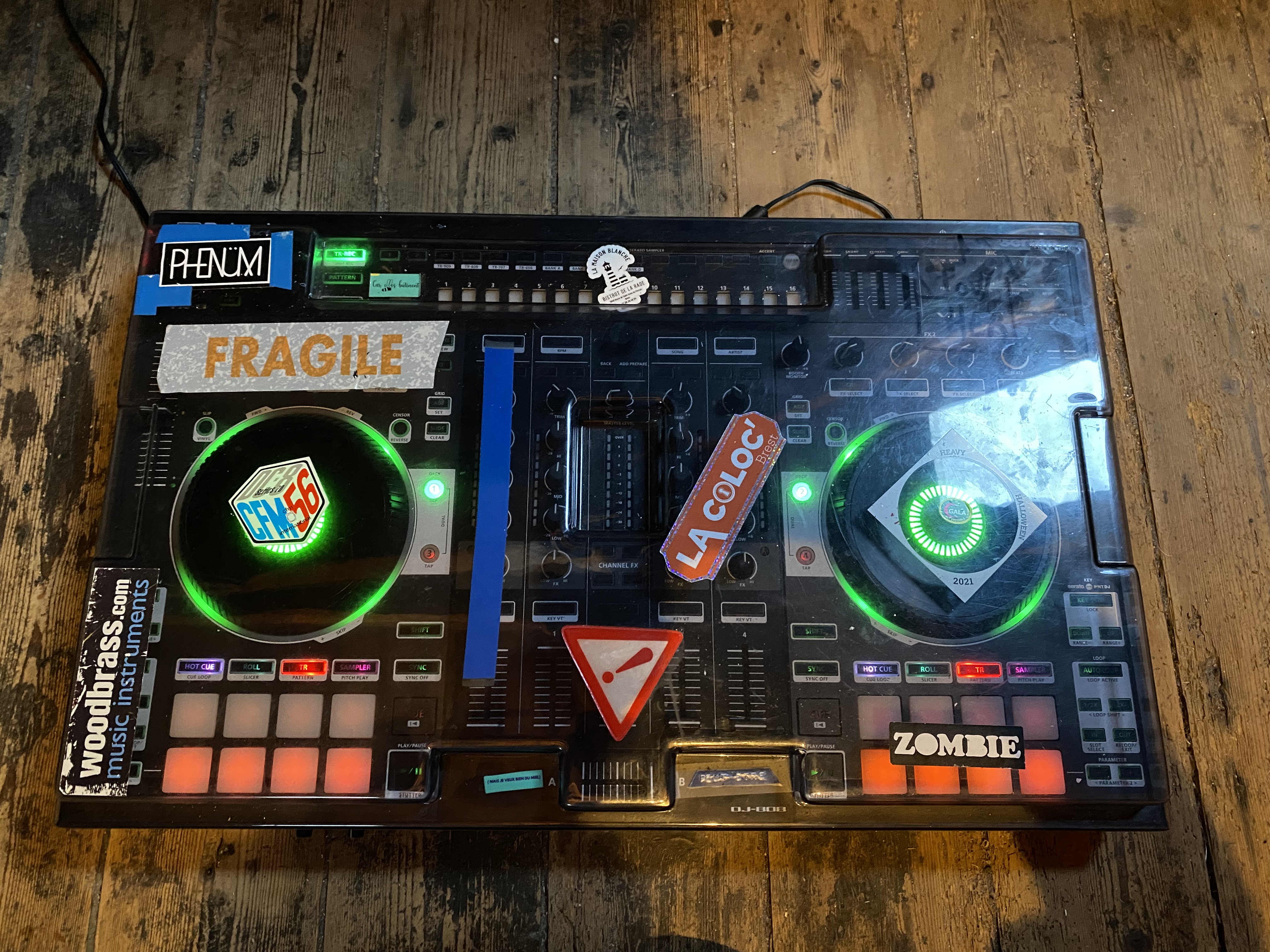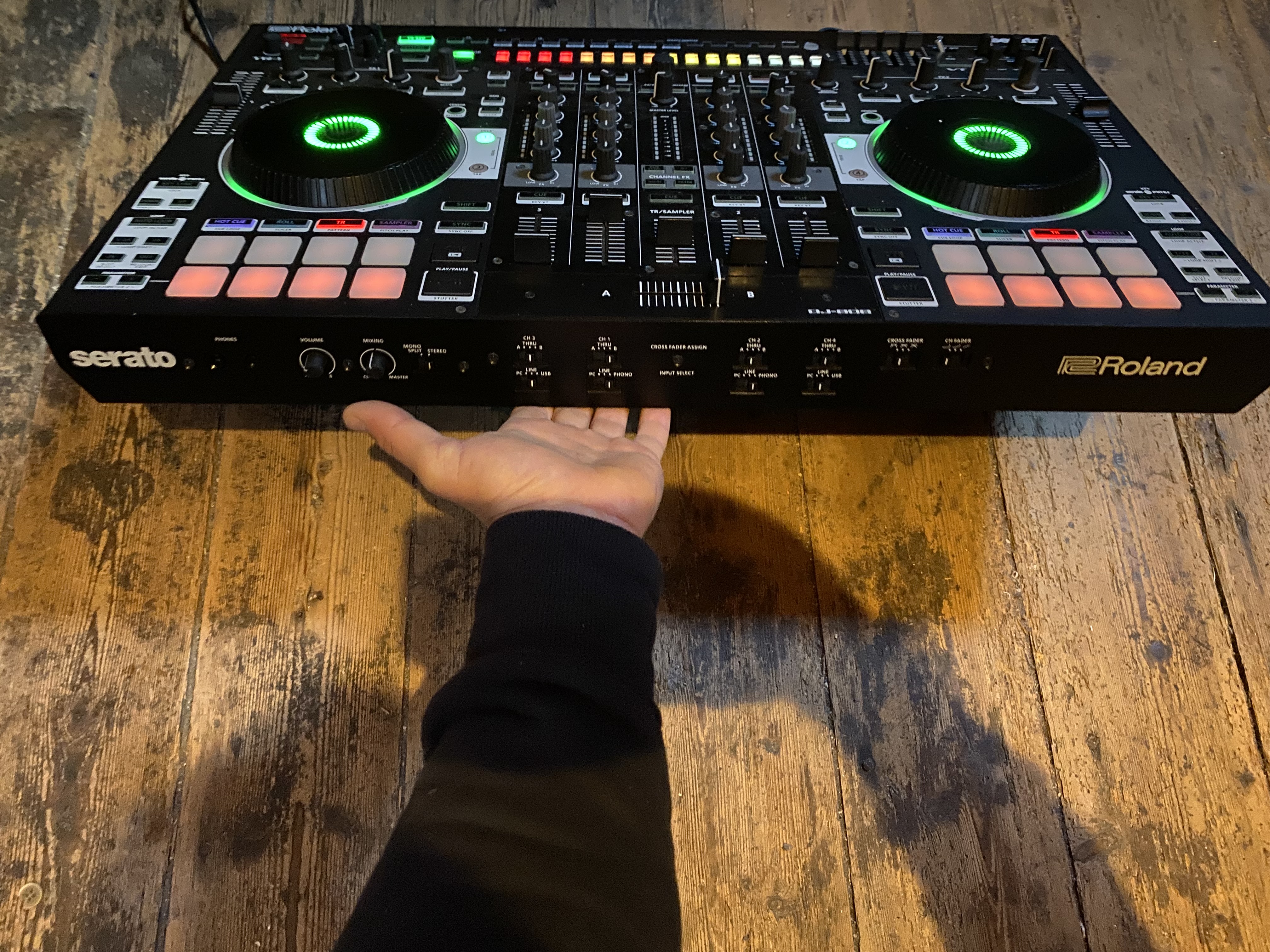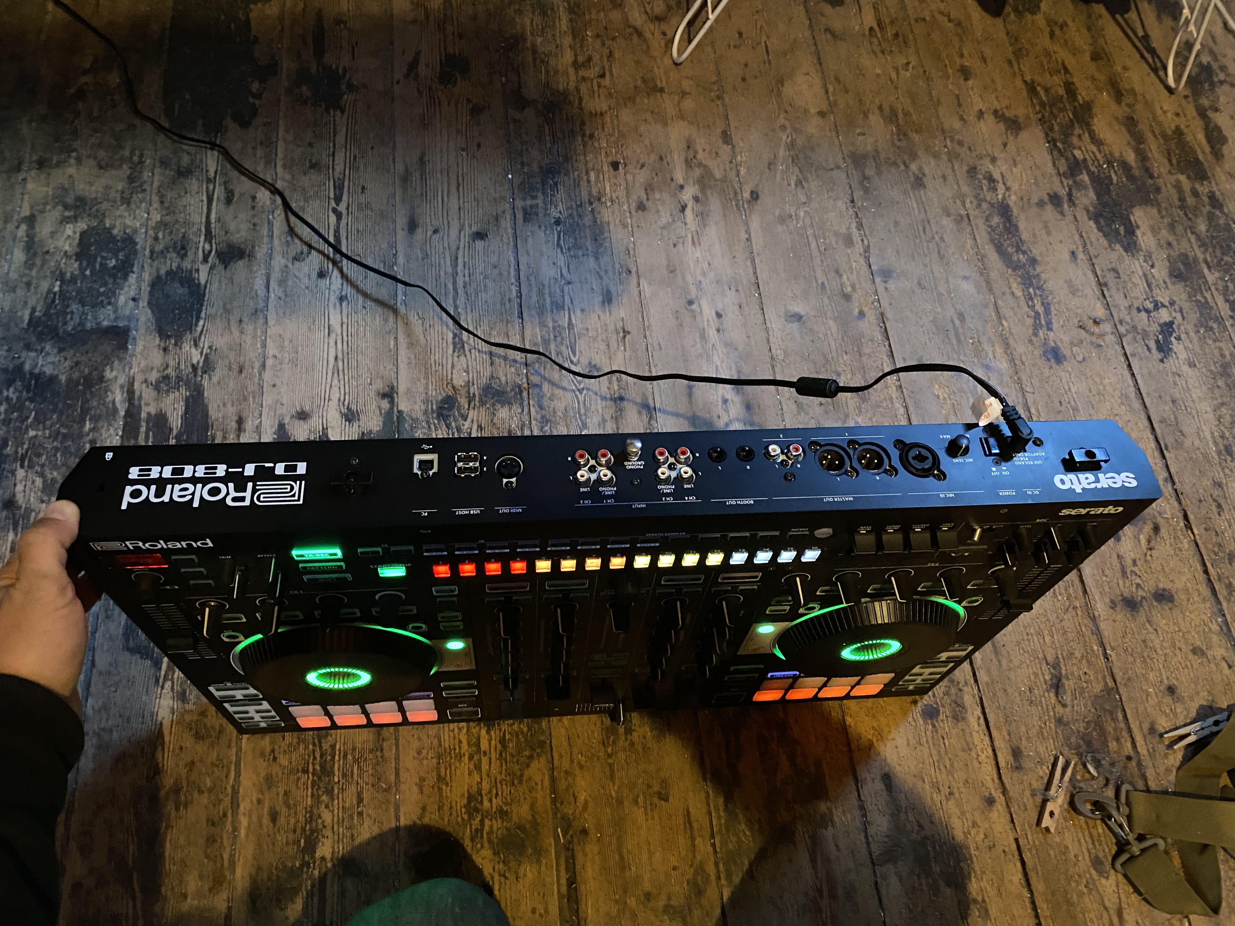 Contrôleur table de mixage Roland DJ 808 en parfait état! Vendu avec câble d’alimentation et câble de connexion usb, decksaver et gigbag y a un compartiment matelassé pour un ordi et on peut y mettre câbles et casque: très pratique un seul contenant pour tout! La boîte à rythme avec les sons des tr606, tr707, tr808 et tr909 est vraiment un atout en live! Déplus on peut contrôler les samples de Serato avec des faders dédiés c’est une tuerie! Bref, je la vends car je me reoriente vers le live avec machine!Envoi possible (je suis très soigneux pour mes colis). N’hésitez pas à me poser des questions.