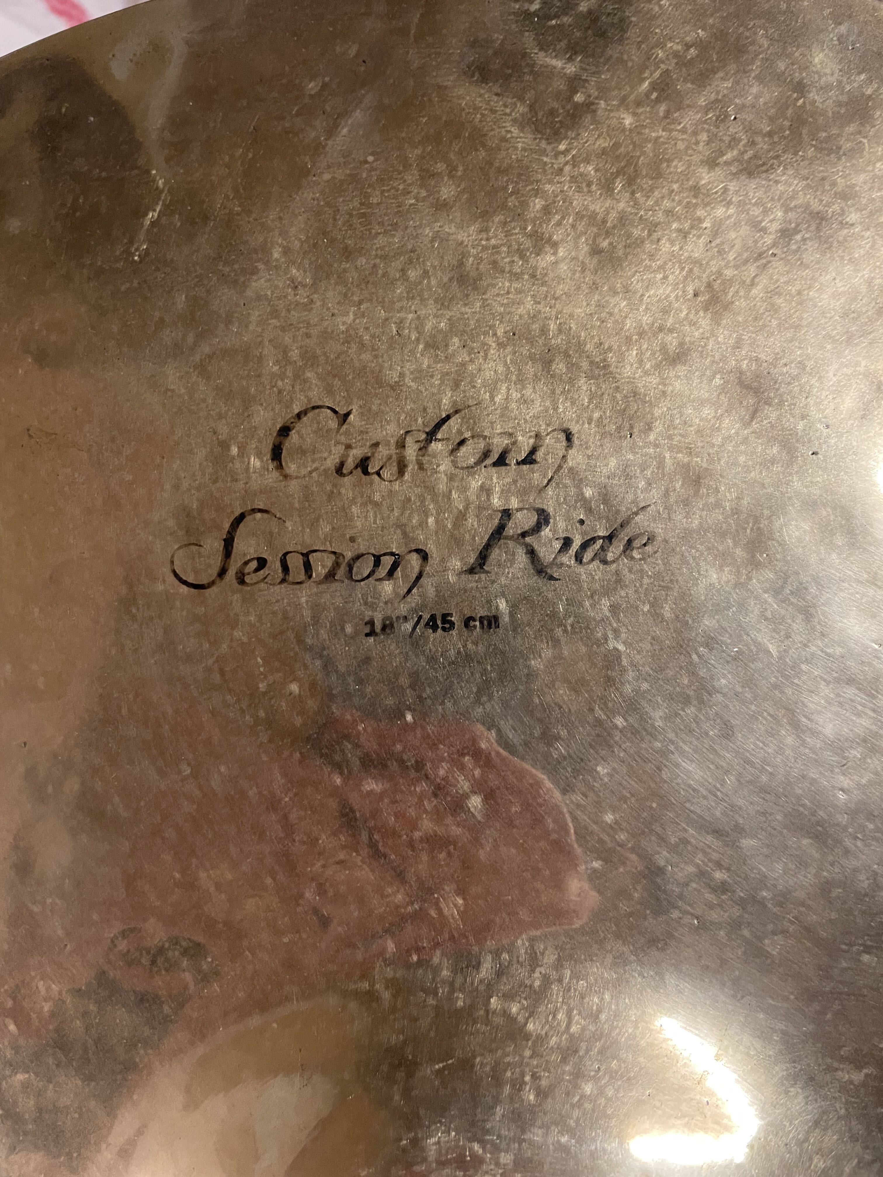 Ride Zildjian modèle "K Custom cession ride" de 18 pouces. Les écritures sur le dessus de la ride sont un peu effacées mais la cymbale est en très bon état (aucune rayure ni fissure).