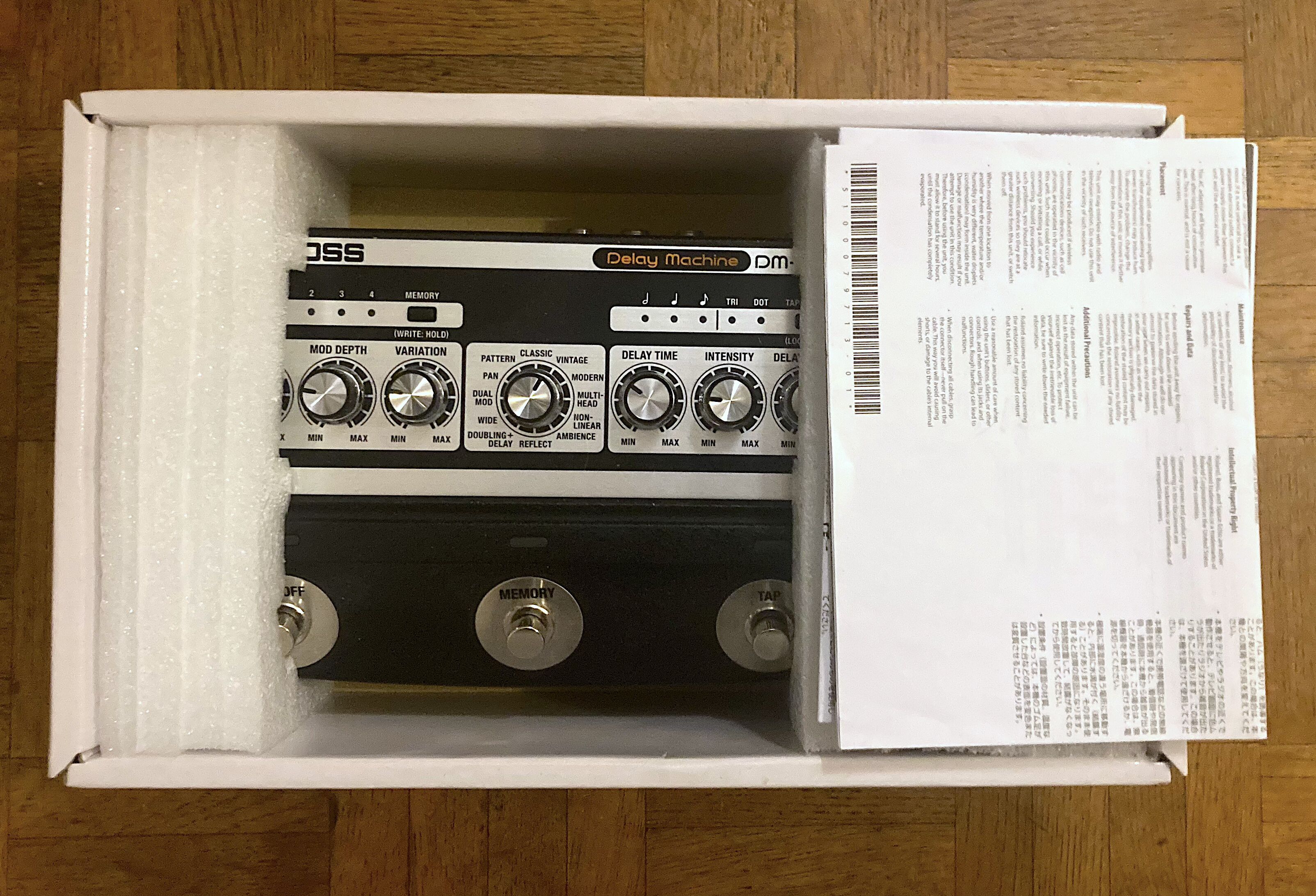 Je vends ce merveilleux délai analogique de chez Boss.Utilisant huit BBDs contrôlés par un processeur dédié, cette pédale procure 12 modes uniques, un fonctionnement en stéréo et une large gamme de couleurs tonales tout en assurant un traitement du signal 100 % analogique de l'entrée à la sortie. Avec ses 127 mémoires utilisateur, le Tap Tempo, la persistance du son et le MIDI, la DM-101 vous procure les fonctions et la polyvalence d'une pédale numérique évoluée, mais avec des caractéristiques de son que l'on n'obtient qu'avec un authentique circuit BBD analogique.