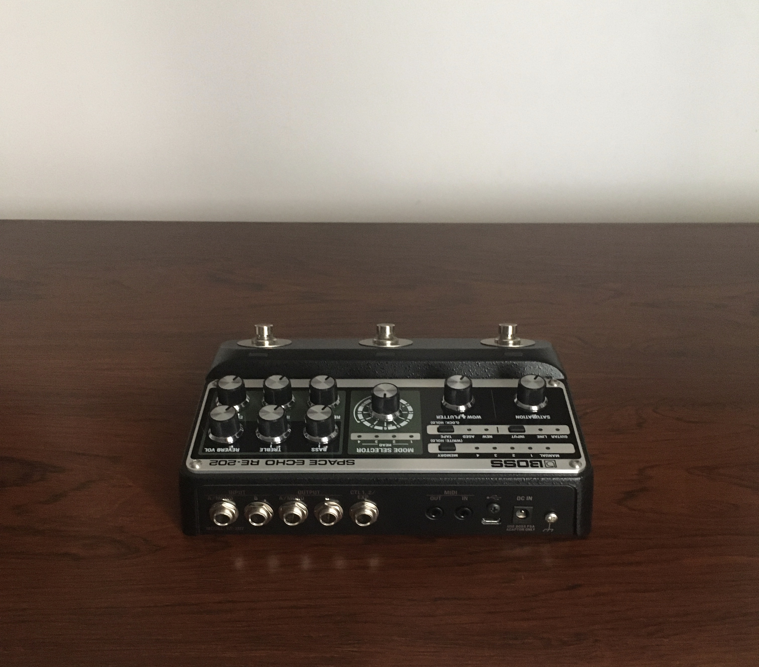 - PEDALE DE STUDIO BOSS ROLAND RE-202 SPACE ECHO. REVERBERATION STEREO. COMPLET AVEC BOITE ORIGINALE, PRISE BOSS ET DOCUMENTATION.- COMME NEUF: PARFAIT ETAT ELECTRONIQUE. PARFAIT ETAT COSMETIQUE.