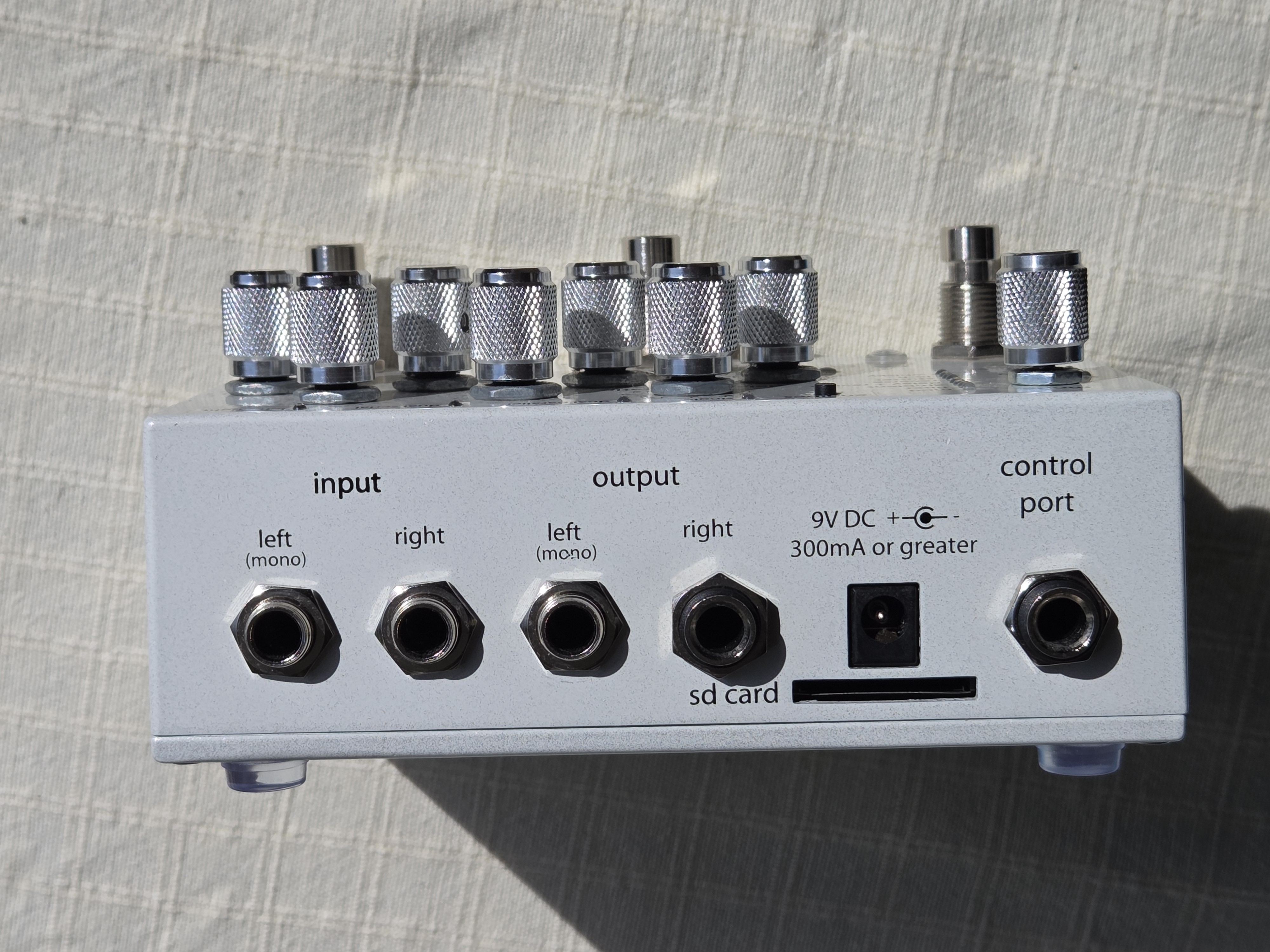- les potards "time" et "tone" sont plus mous que les autres, ils ont une valeur 0 sur la position midi (on sent le très léger cran).