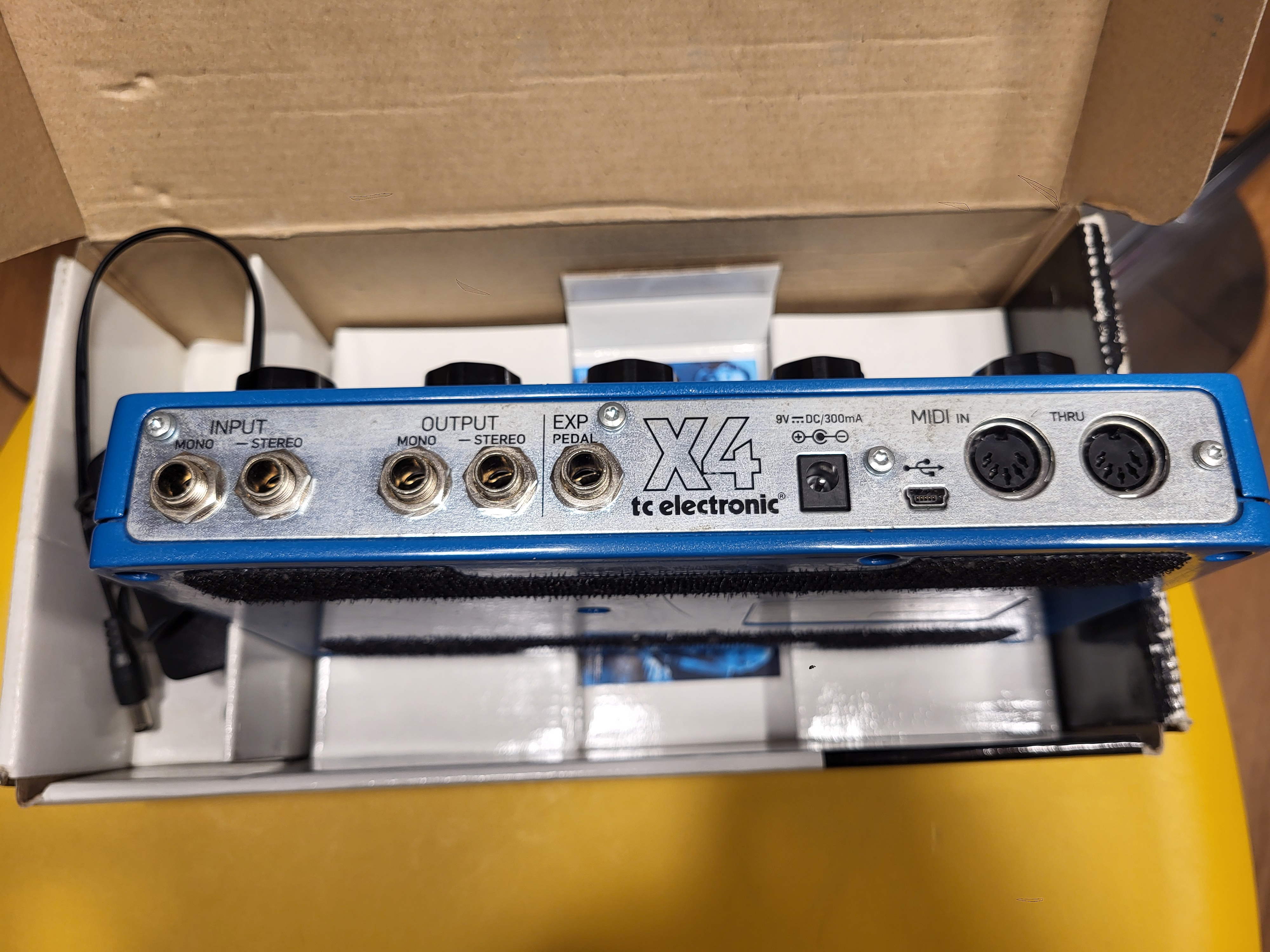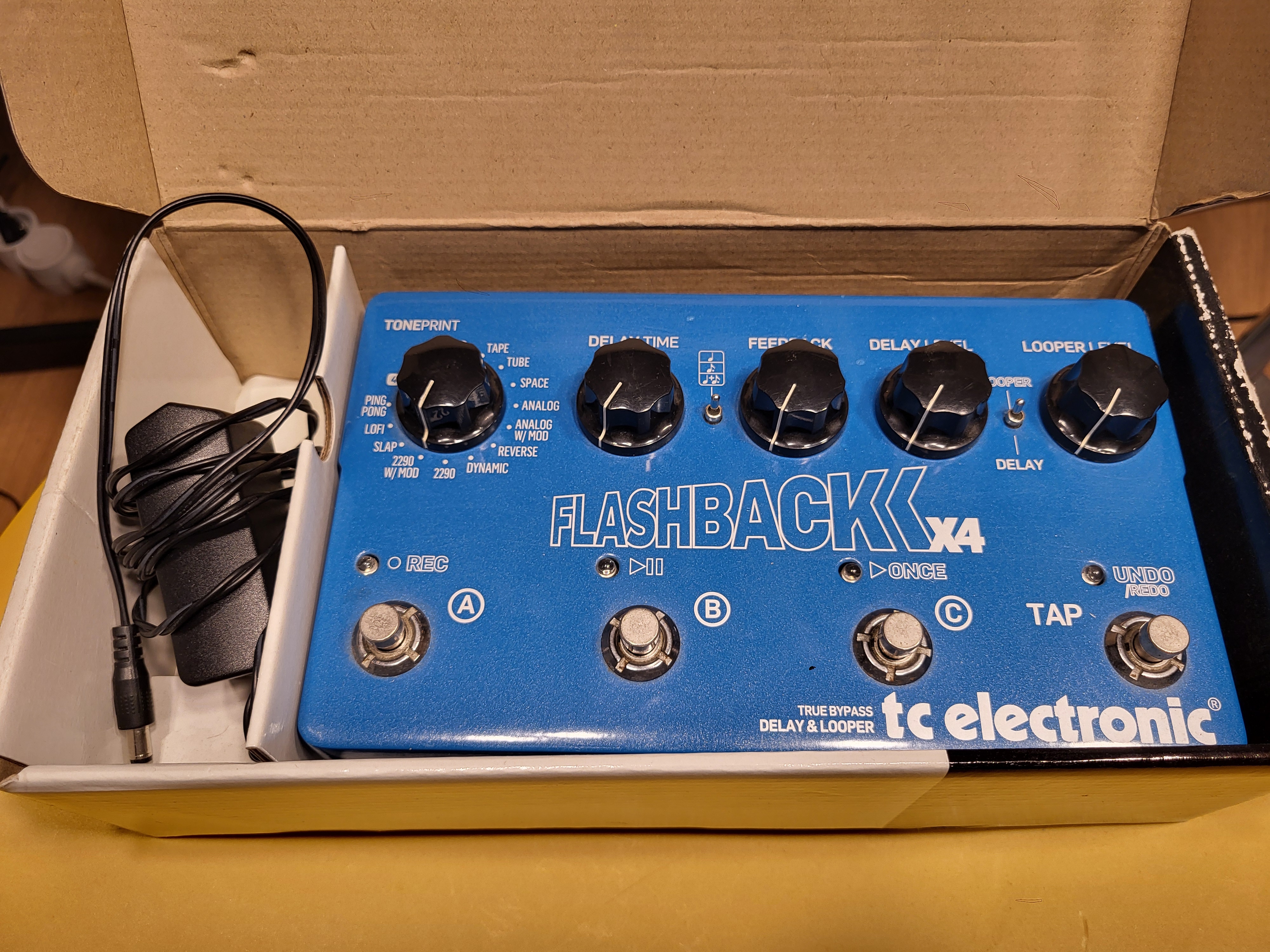 Bonjour,je vend mon flashback x4 delay & looper première génération en parfait état de fonctionnement. Acheté en 2014, et finalement très peu utilisé (1 concert & deux répètes à tout casser). Fournie dans sa boîte d'origine. J'y joint une alimentation de remplacement (l'originale ayant été utilisée jusqu'à l'os). C'est une centre négatif 9v 1A de sortie sachant que la pédale fonctionne en 9v centre négatif et consomme 300mA donc amplement suffisant pour l'alimenter.