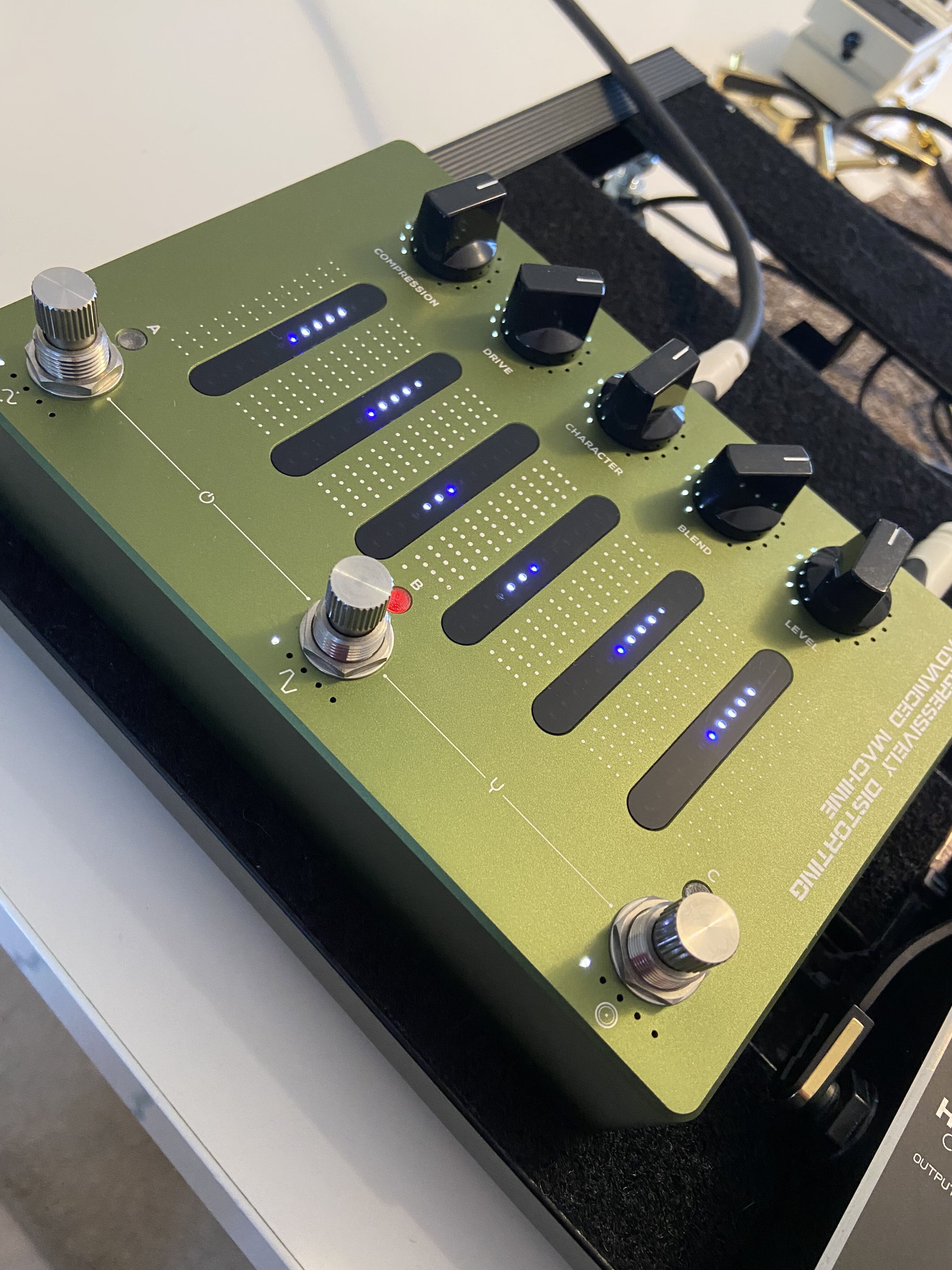- Caractéristiques : Compression, Drive, Character, Blend, Niveau
