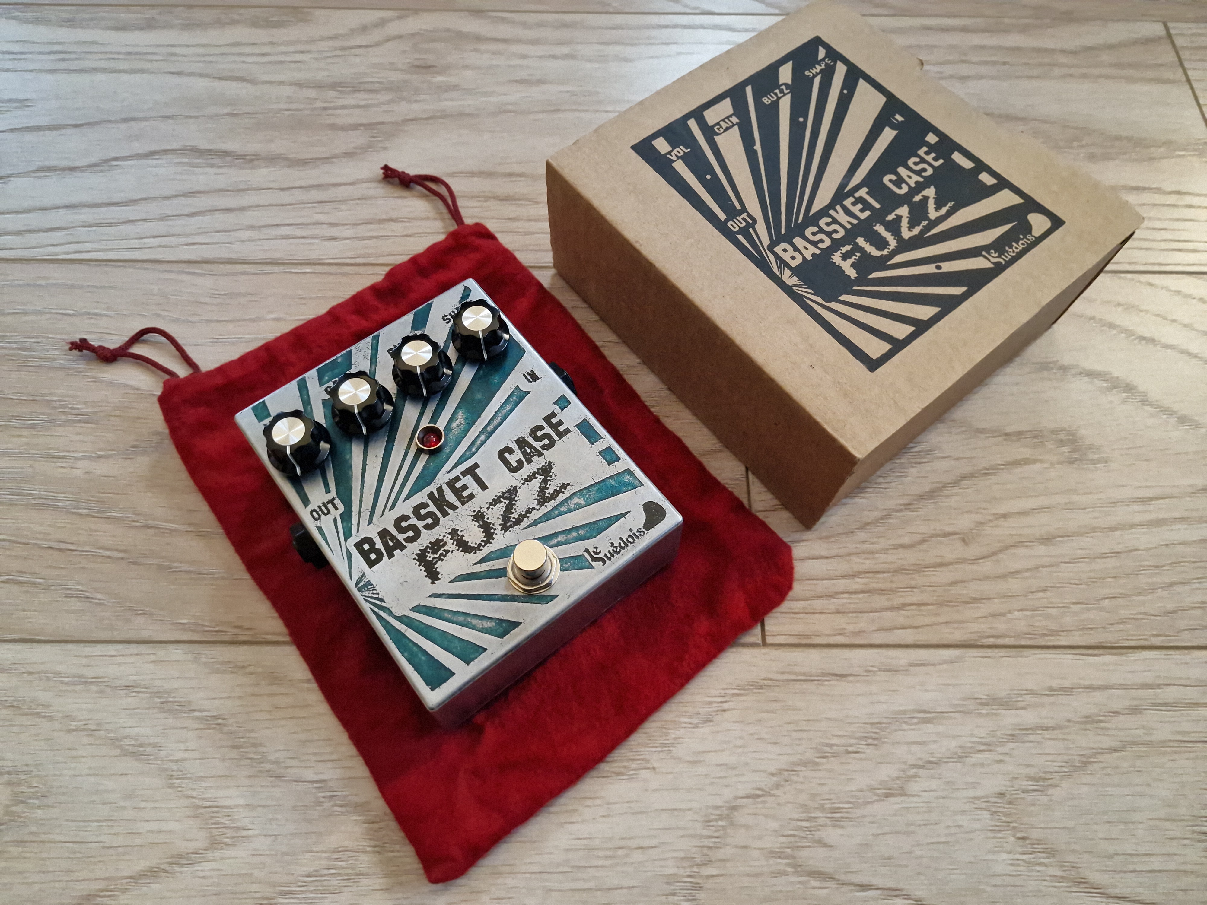 Vends pédale fuzz Le Suédois Bassket Case, comme neuve, avec sa boîte et pochette en tissu d’origine.Littéralement comme neuve - jamais de concert, utilisée uniquement en studio (non-fumeur).