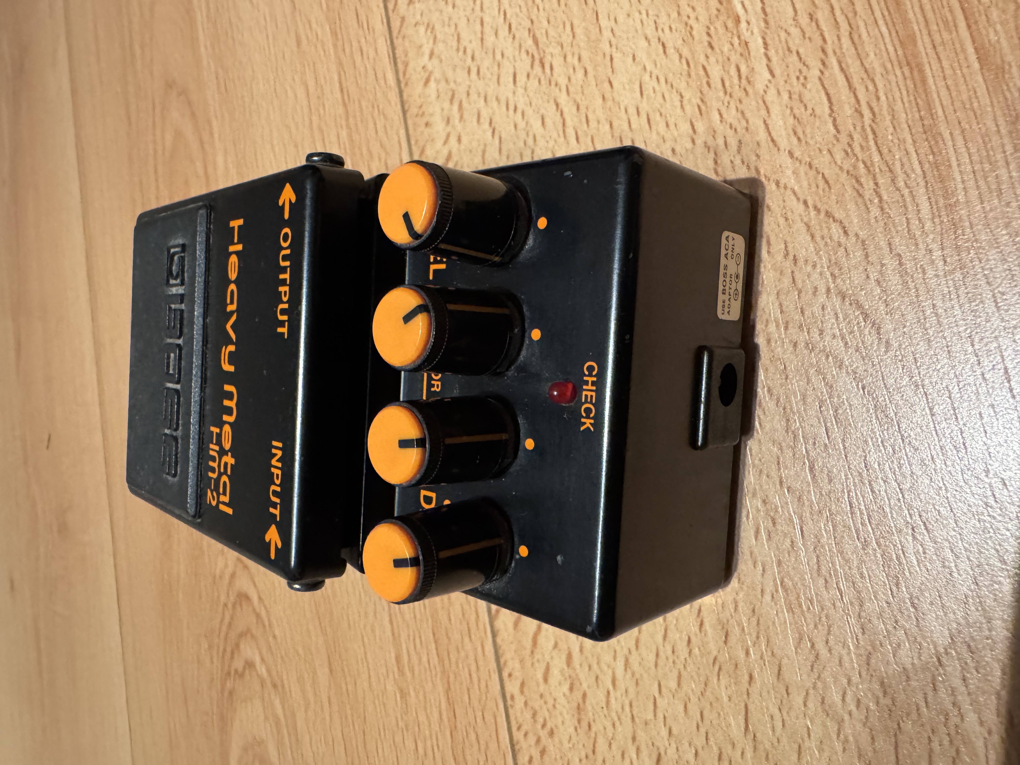 Attention à l'alimentation : les Boss d'époque utilisaient des transfos ACA 9v que l'on trouve encore aujourd'hui neuf en magasin mais un poil cher. On peut les remplacer par un simple adaptateur 12V DC . Si toutefois vous souhaitez la raccorder à votre bloc d'alim sur votre pedalboard, utiliser une sortie 12V DC. Si vous n'avez pas de sortie 12v et que votre bloc N'EST PAS en sorties isolées vous pouvez raccorder la HM2 à une de ses consœurs au moyen d'une simple guirlande, sans rentrer dans des détails technique que je ne maitrisent pas, ceci à pour effet de lui procurer le courant suffisant pour un fonctionnement optimal. Vous trouverez des infos plus précises dans cette astuce : https://fr.audiofanzine.com/egaliseur-graphique-pour-guitare/boss/ge-7/pedago/astuces/boss-aca-psa-9v-12v-5744/.