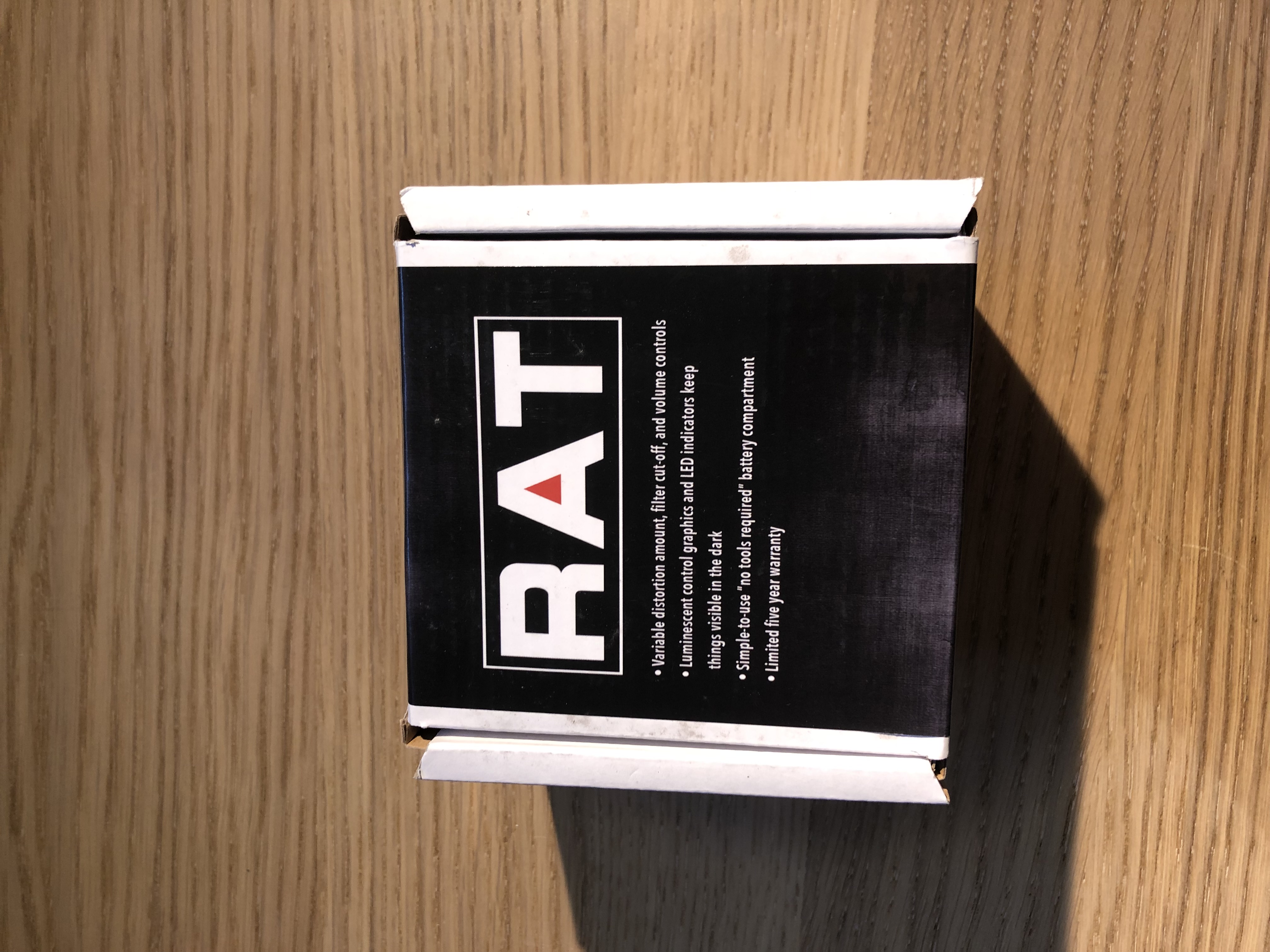 Un switch 3 positions (3 sons différents, rat trditionnelle, phat rat, beaucoup plus épaisse et avec beaucoup de gain, et un mode boost)