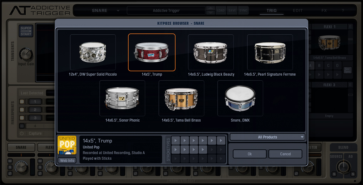 Addictive Trigger est aussi livré avec une collection de presets et de sons de batteries de la série Addictive, vous pourrez aussi utiliser vos propres ADpaks et le système supporte les batteries MIDI tierces.