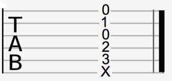 Les chiffres inscrits sur les lignes correspondent aux cases sur lesquelles vous devez appuyer pour obtenir les notes voulues, la présence d’un 0 ou d’un O vous invitant à jouer la corde « à vide », c’est-à-dire sans appuyer dessus avec la main gauche (ou la main droite pour les gauchers). Lorsqu’un X se trouve à la place d’un chiffre, c’est qu’il faut étouffer la corde en question.
