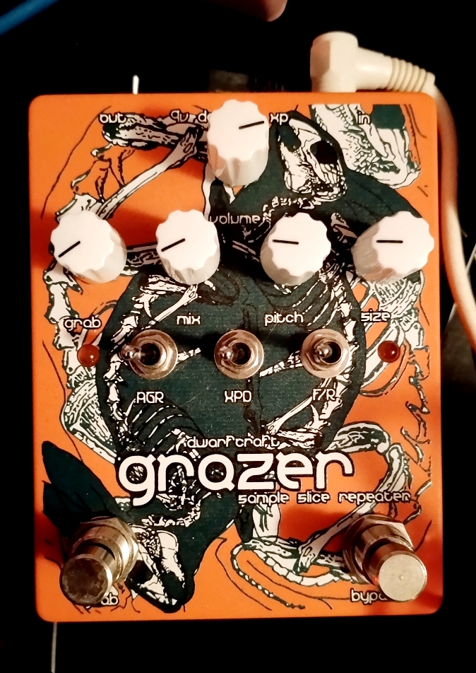 - GRAB - the pedal will automatically loop some of the granular audio at regular intervals defined by the grab knob, or whenever the Grab foot switch is pressed.