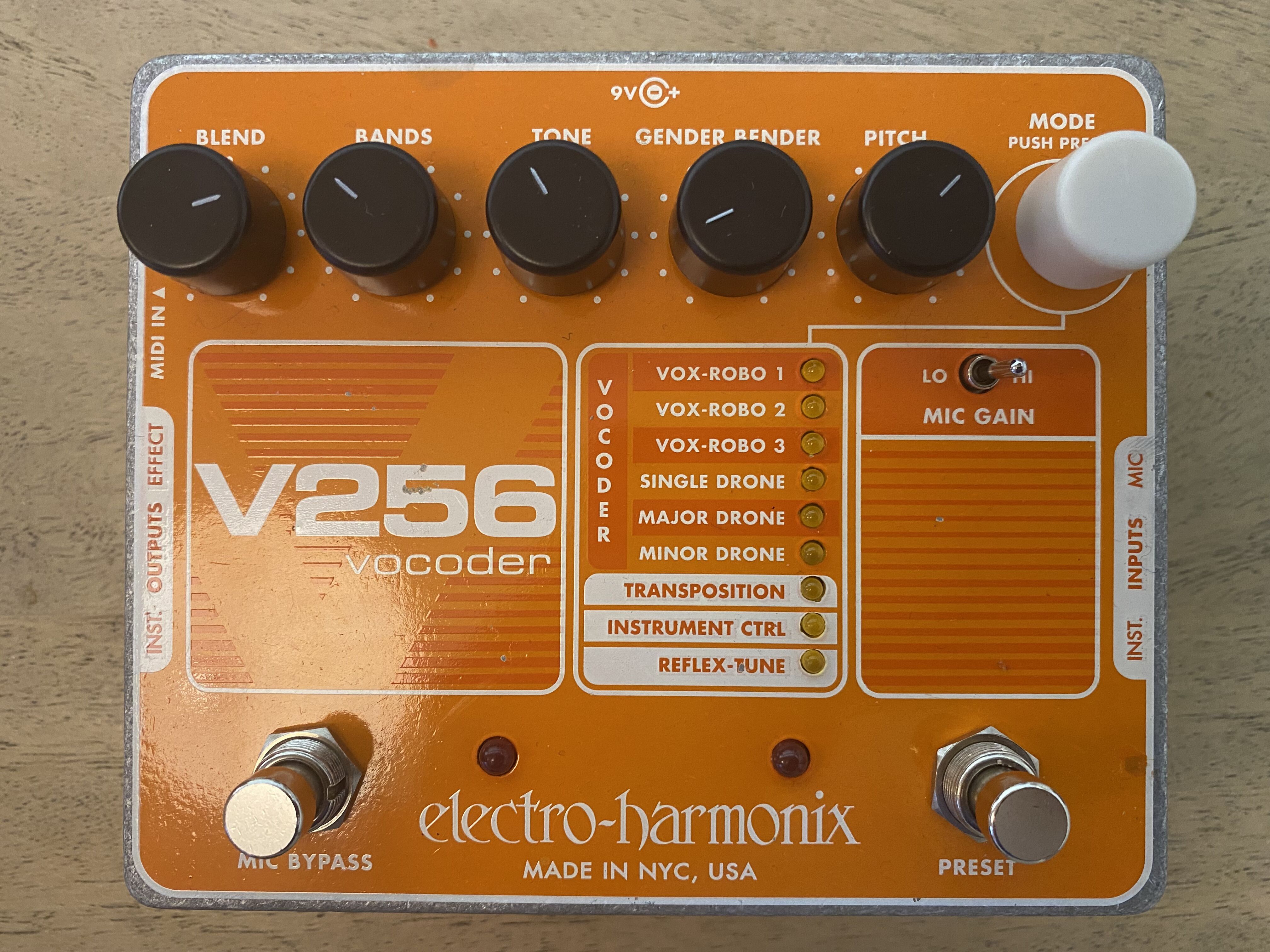 Le V256 est un vocoder au format pédale. Il offre 9 modes, des entrées et sorties instrument et micro, ainsi qu'une entrée MIDI.