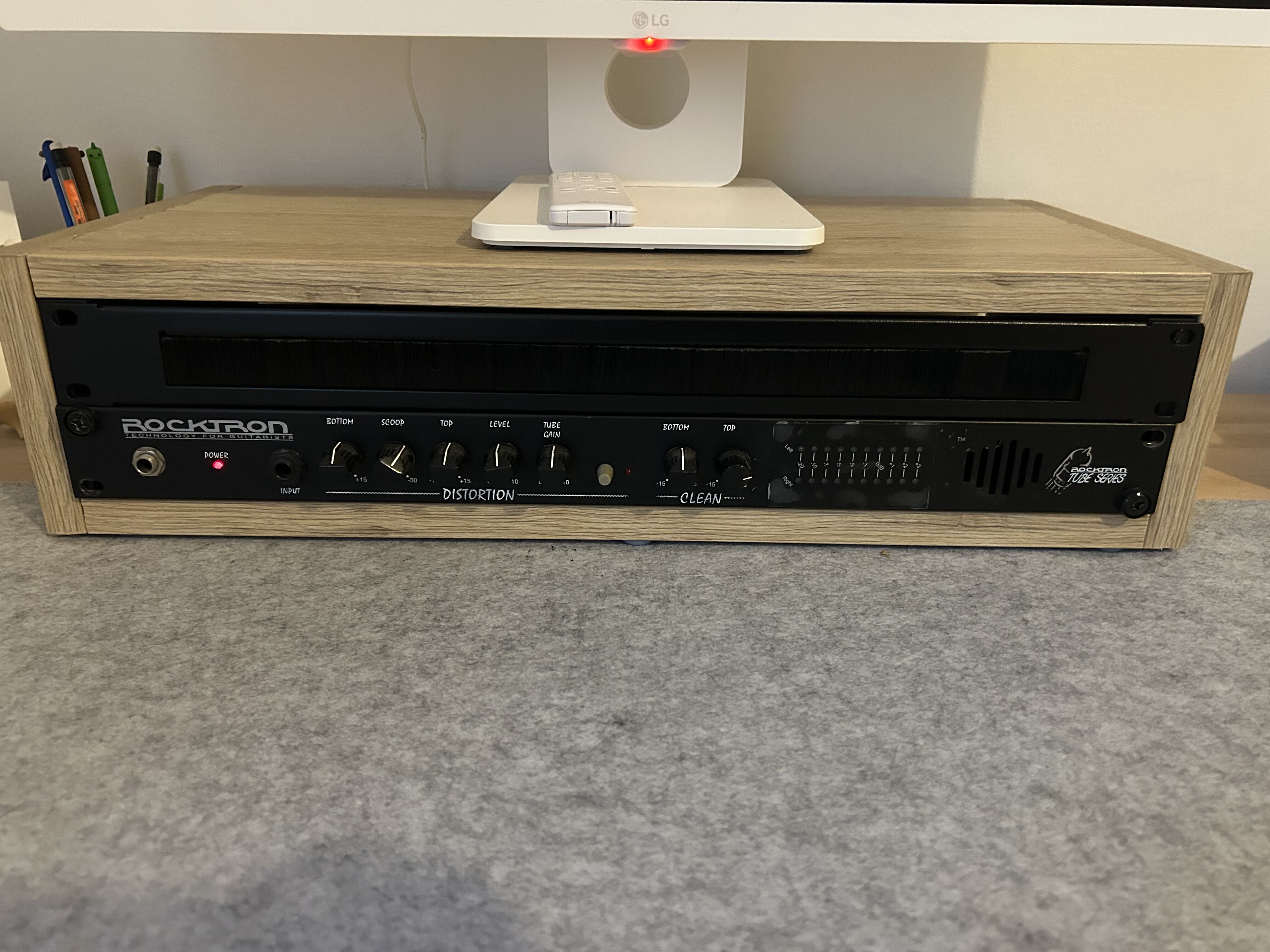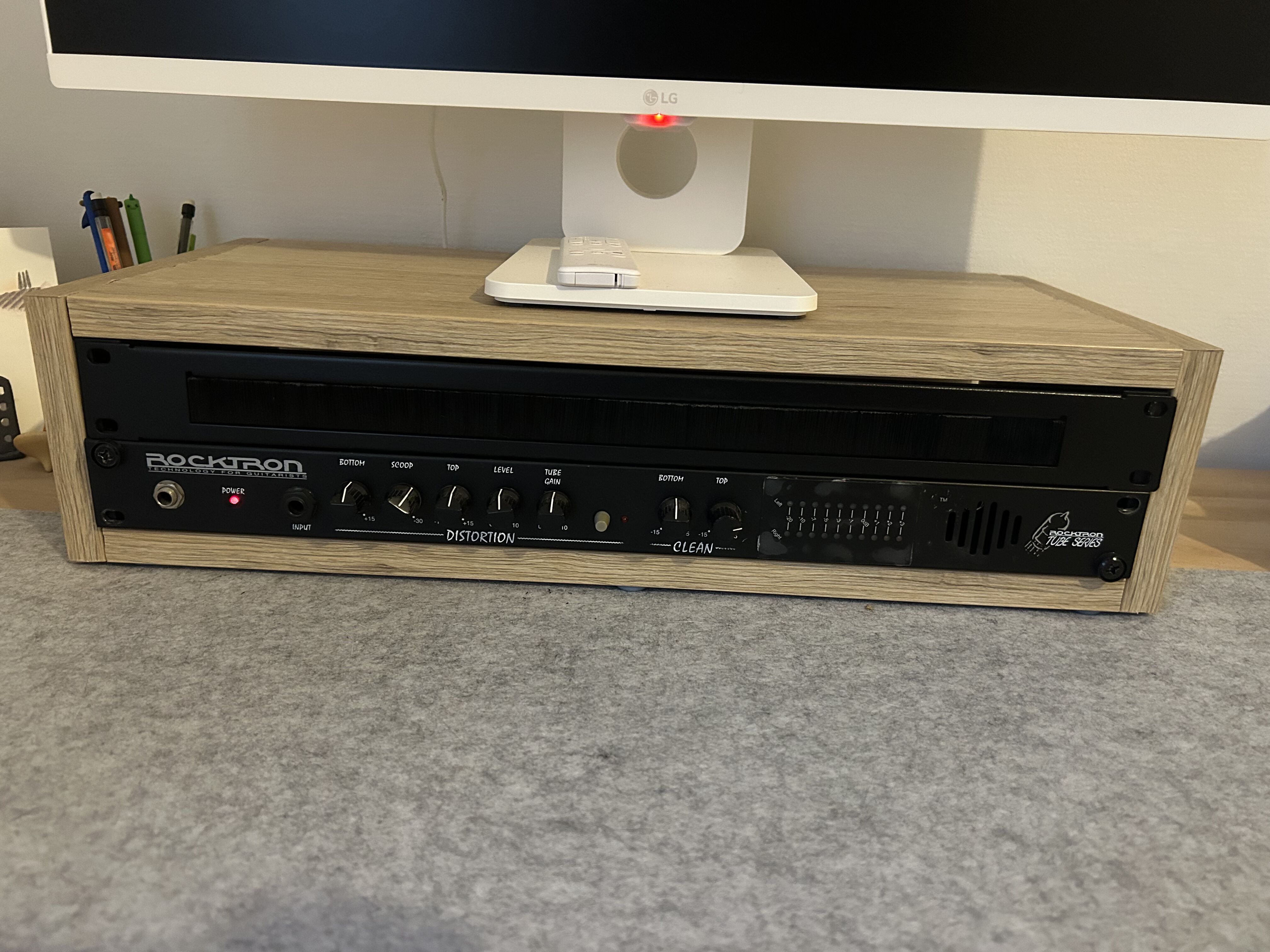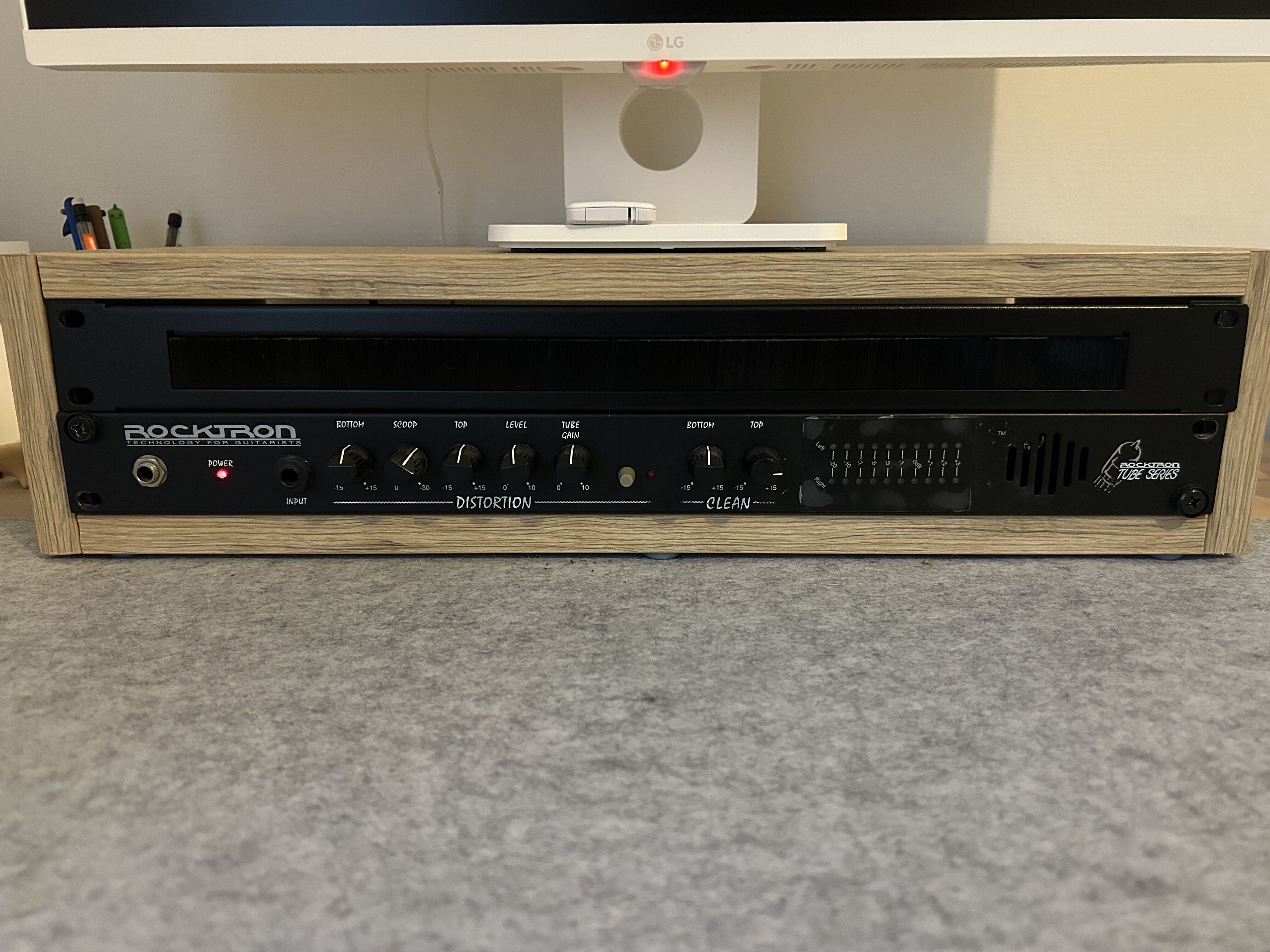 Je vends ce rack 2U homemade avec inclus une distortion Rocktron Rube Series et le passe câble