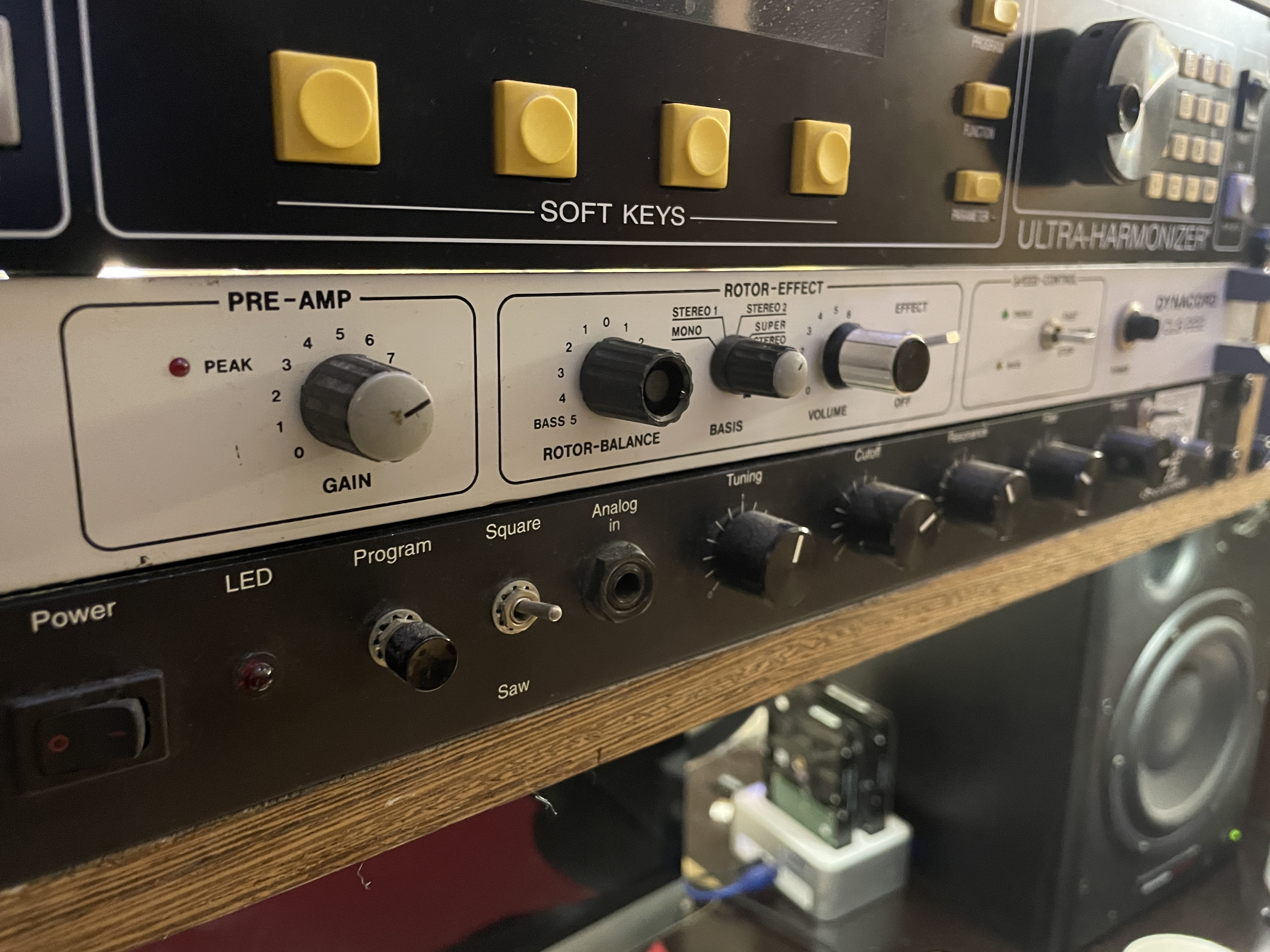 - réglage fin (10%) à l'arrière du Rack des 2 vitesses des rotors ( indépendantes donc! comme un désaccordage des Rotors Basse et Aigu , à écouter/ tester absolument)