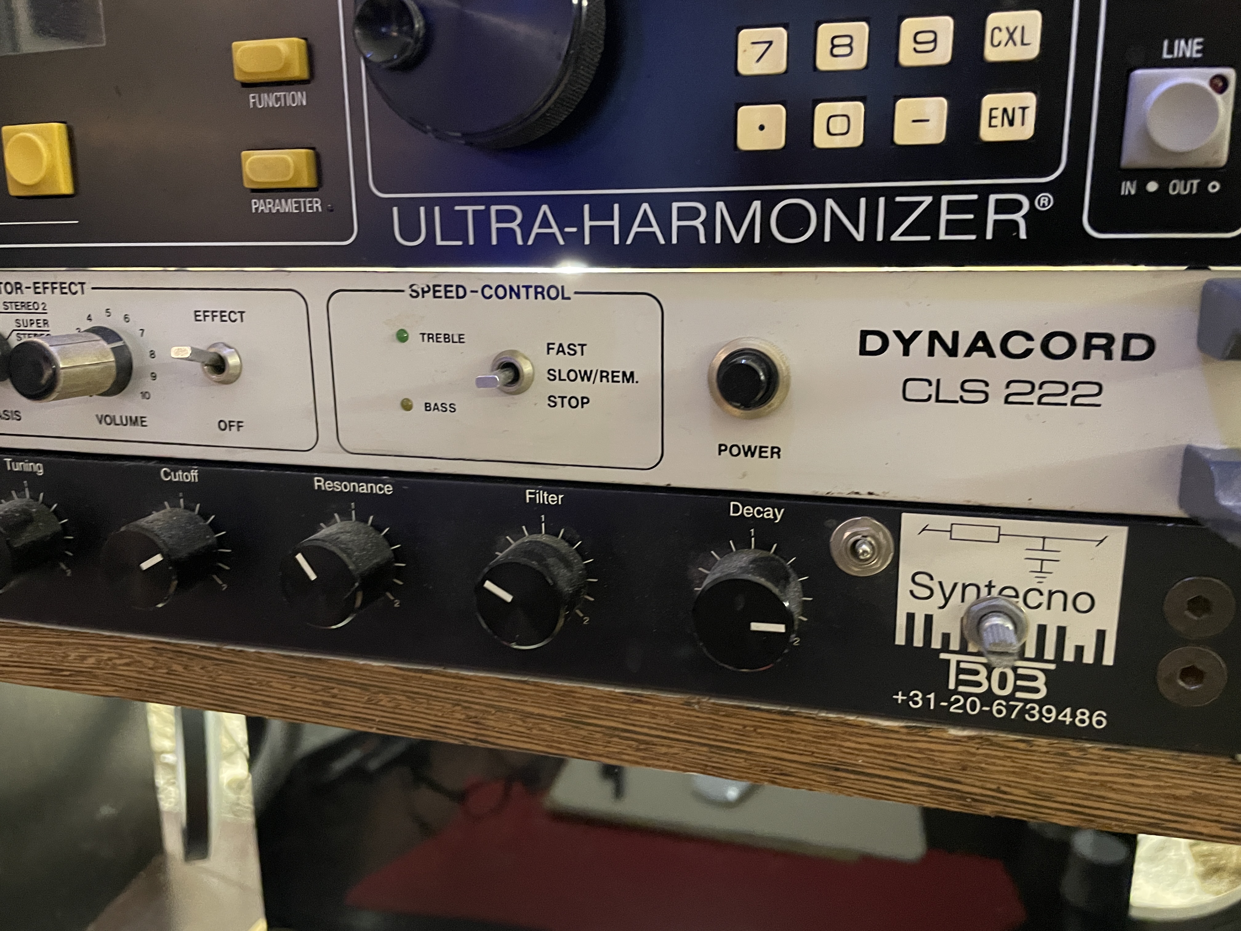 Je vends une Dynacord CLS 222, version blanche, rare et il semblerait la plus récente .C’est sans doute la meilleure simulation Leslie analogique jamais produite : chaleur, dynamique, profondeur…psychoacoustique, tout y est !