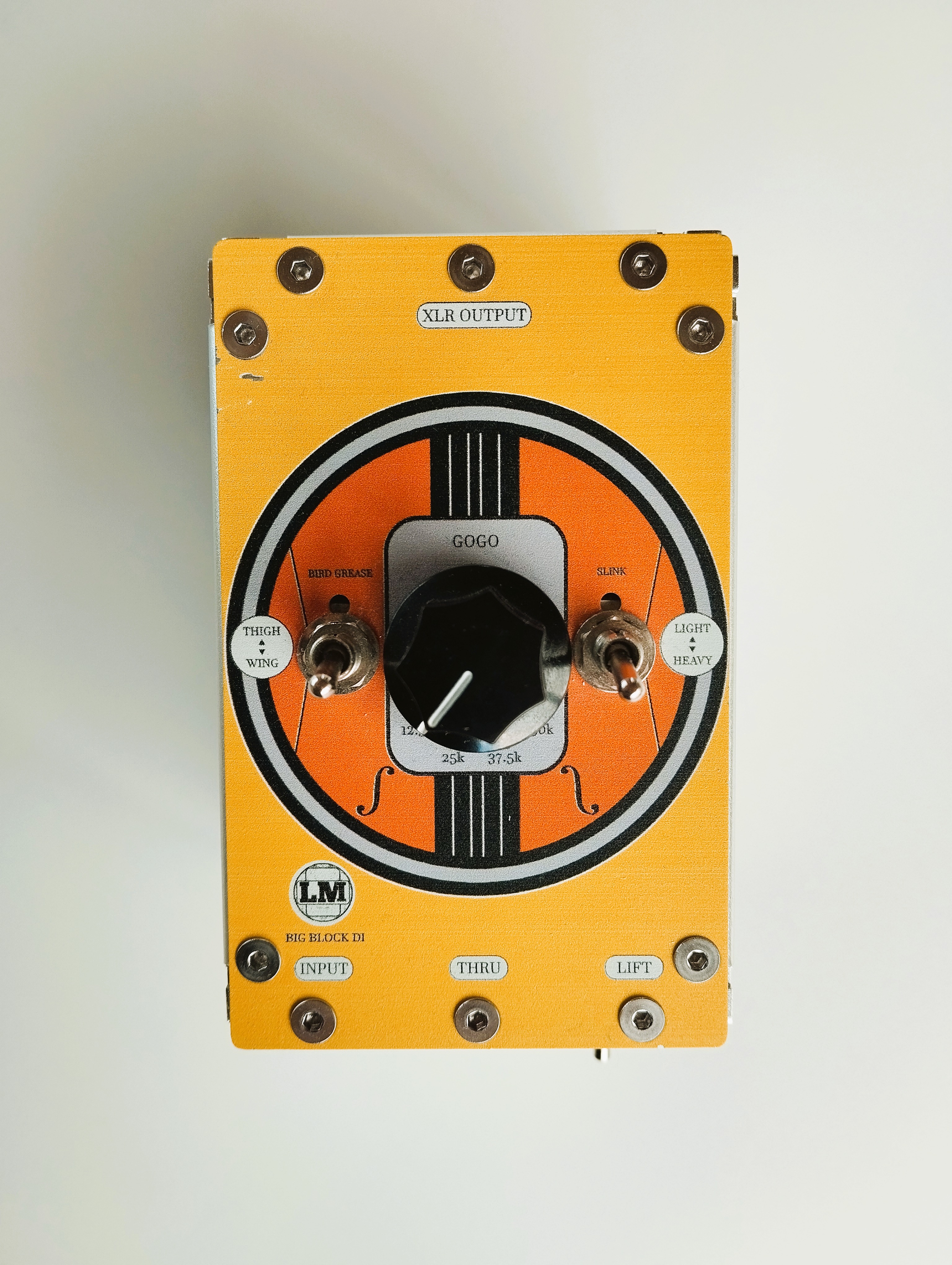 La Big Block DI dispose également de deux contrôles supplémentaires de mise en forme du son appelés BIRD GREASE et SLINK. Bird Grease agit sur les extrêmes du spectre large bande et sculpte en plus le caractère de l’attaque de la DI.