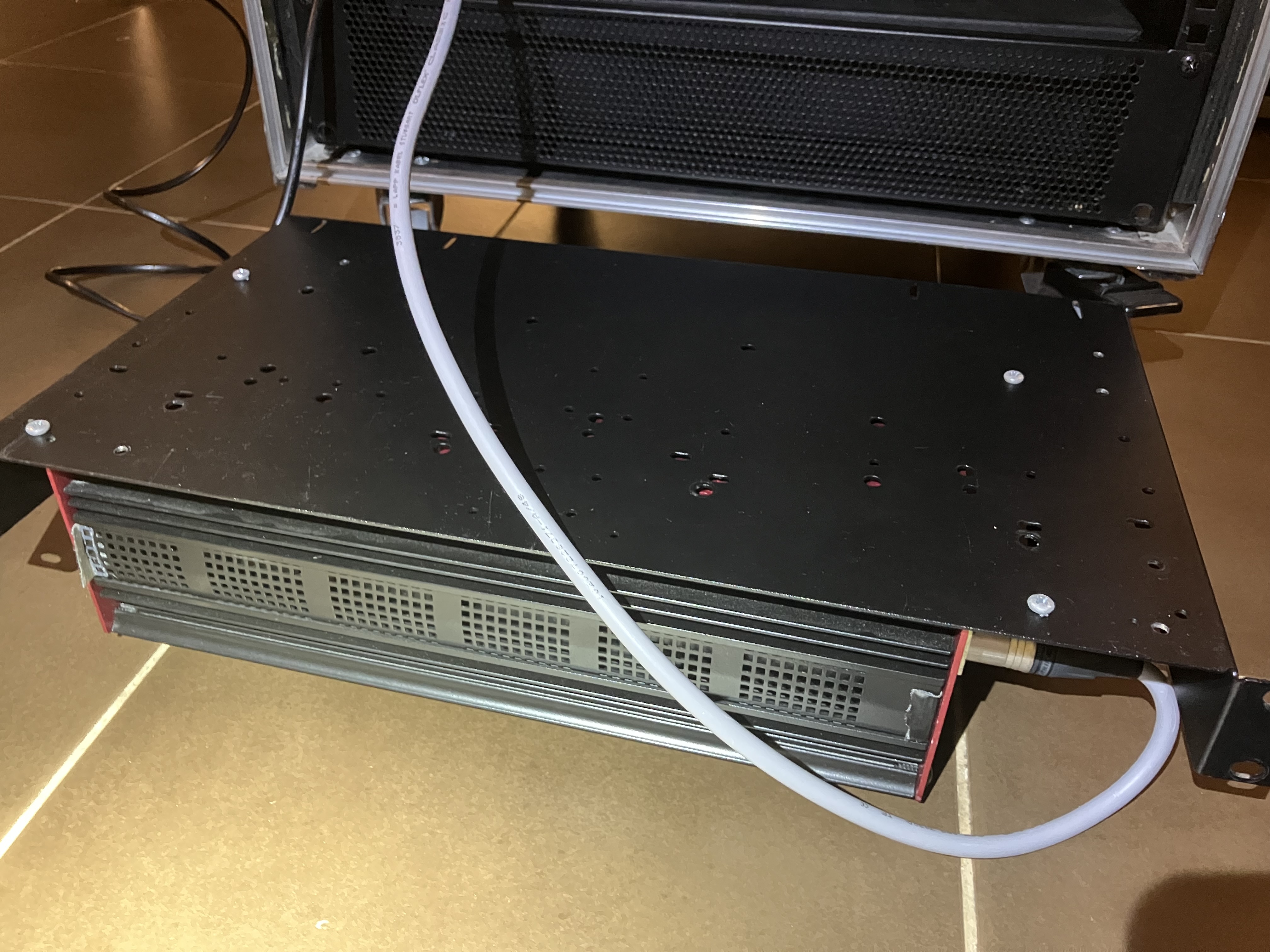 Elle alimente le rack de 11 modules et peut en alimenter un deuxième pour un total de 22 modules. Pour monter à 22 modules il faut juste ajouter les bons connecteurs, et éventuellement couper le câble existant en deux (il est long il y a de la marge). Et bien sûr il faut un deuxième rack de 11 !